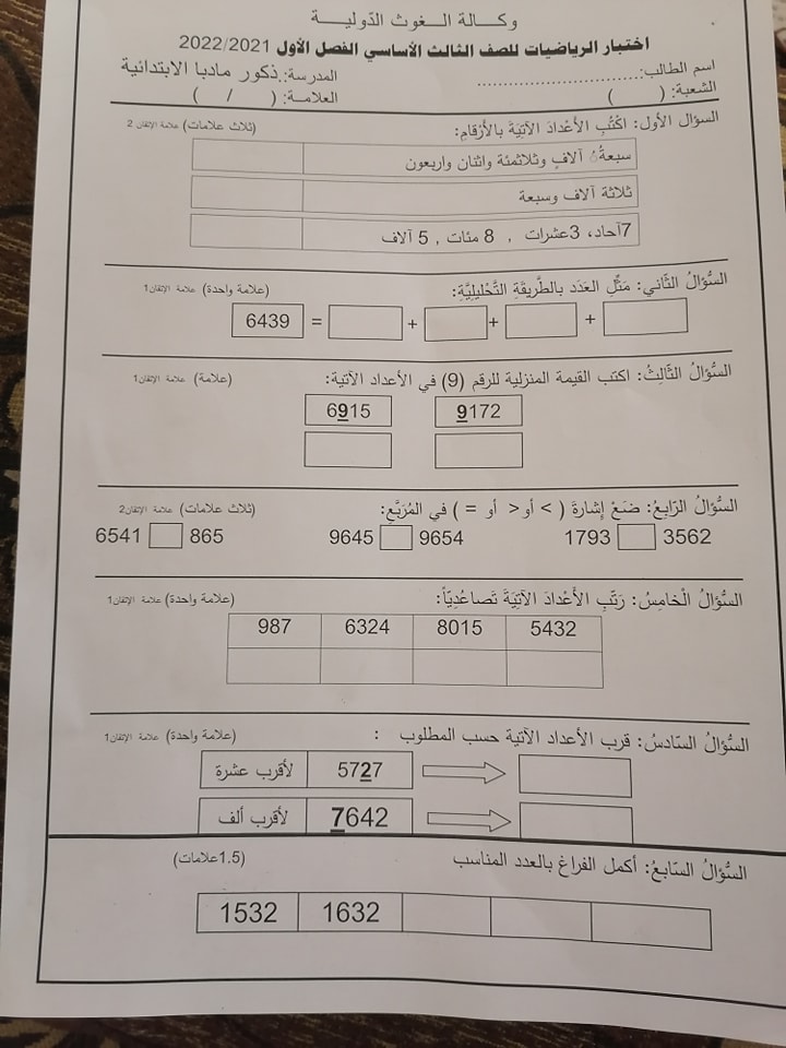 صور امتحان نهائي لمادة الرياضيات للصف الثالث الفصل الاول 2021 صور اختبار نهائي لمادة الرياضيات للصف الثالث الفصل الاول 2021 صور امتحان نهائي لمادة الر