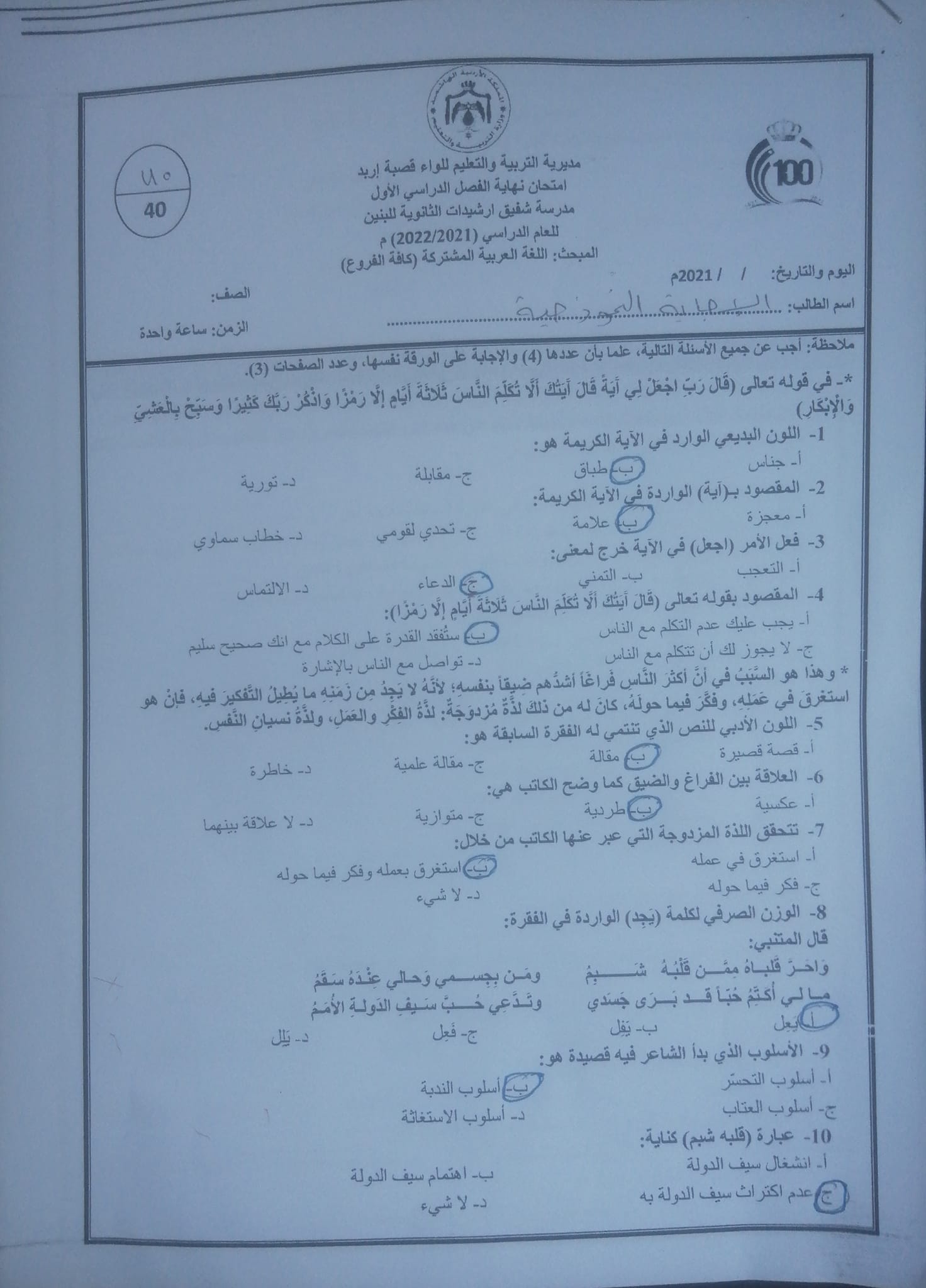 صور امتحان نهائي لمادة اللغة العربية للصف الثاني الثانوي الفصل الاول 2021 صور اختبار نهائي لمادة اللغة العربية للصف الثاني الثانوي الفصل الاول 2021 صو