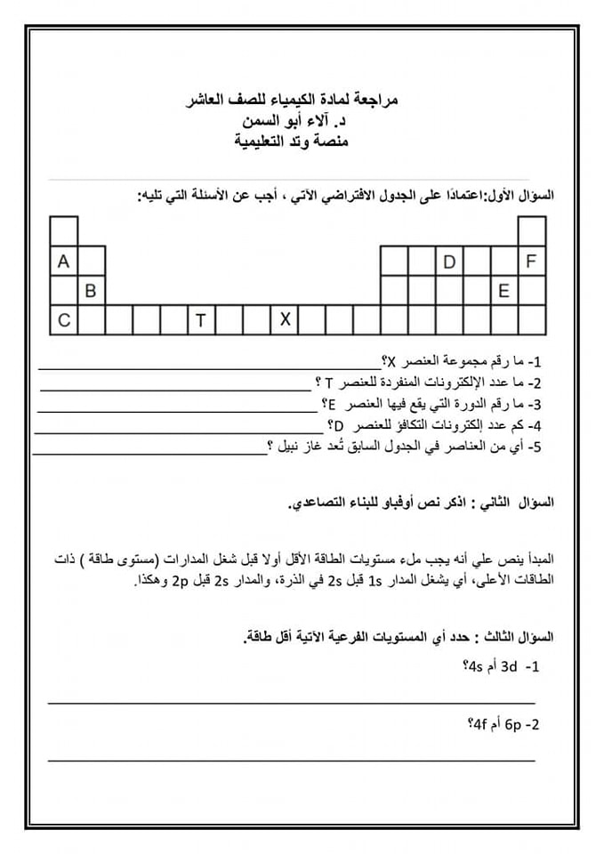 صور امتحان نهائي لمادة الكيمياء للصف العاشر الفصل الاول 2021 صور اختبار نهائي لمادة الكيمياء للصف العاشر الفصل الاول 2021 صور امتحان نهائي لمادة الكيم