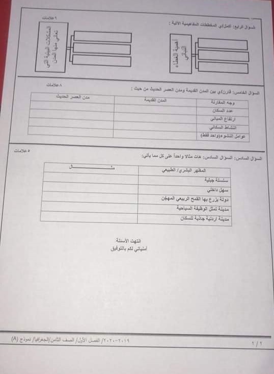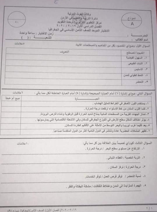 صور امتحان نهائي لمادة الجغرافيا للصف الثامن الفصل الاول 2019 نموذج A وكالة صور اختبار نهائي لمادة الجغرافيا للصف الثامن الفصل الاول 2019 نموذج A وكالة
