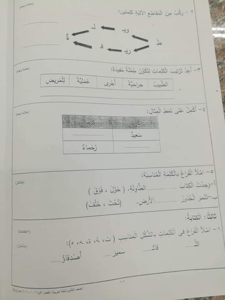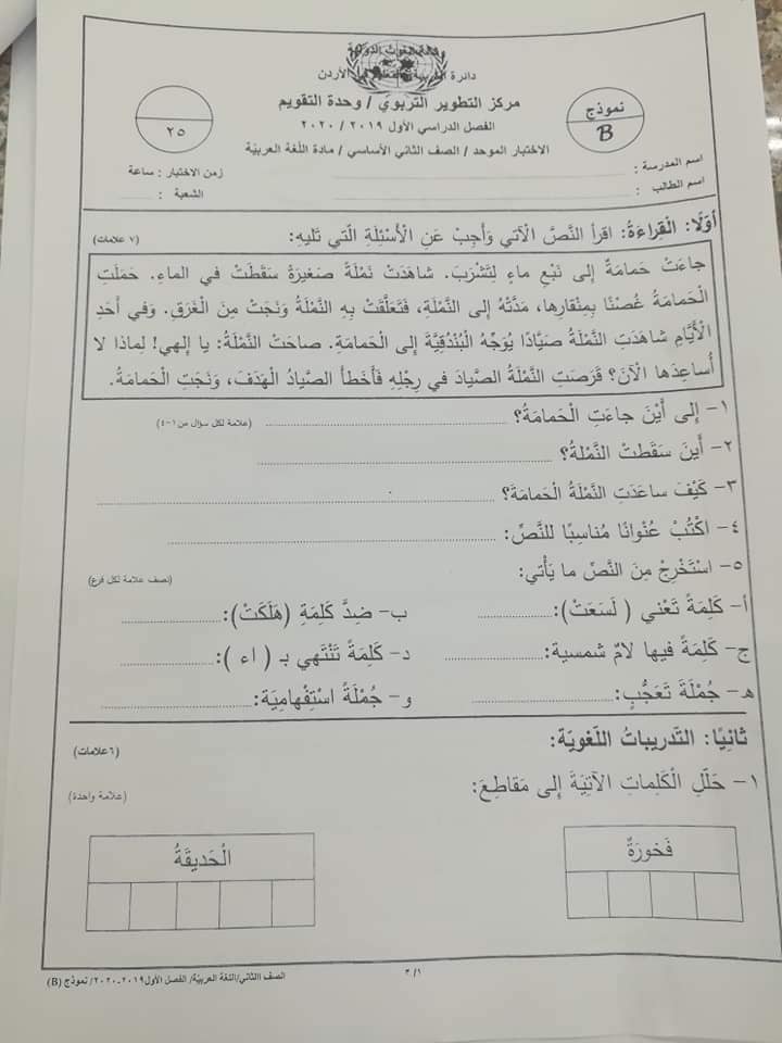 صور اختبار نهائي لمادة اللغة العربية للصف الثاني الفصل الاول 2019 نموذج B وكالة صور امتحان نهائي لمادة اللغة العربية للصف الثاني الفصل الاول 2019 نموذج B وكالة