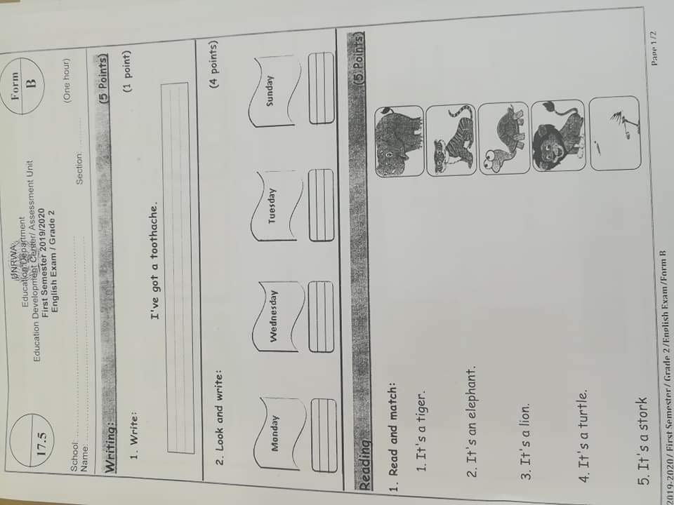 صور اختبار نهائي لمادة اللغة الانجليزية للصف الثاني الفصل الاول 2019 نموذج B وكالة صور امتحان نهائي لمادة اللغة الانجليزية للصف الثاني الفصل الاول 2019 نموذج B وكالة