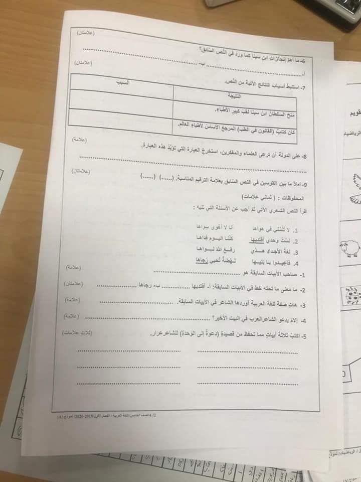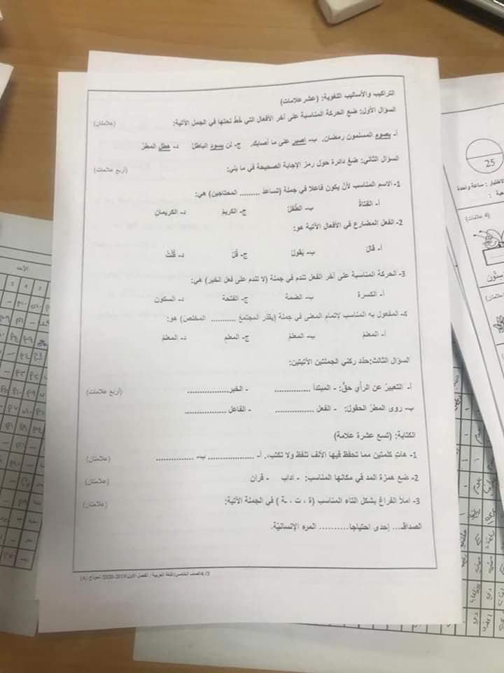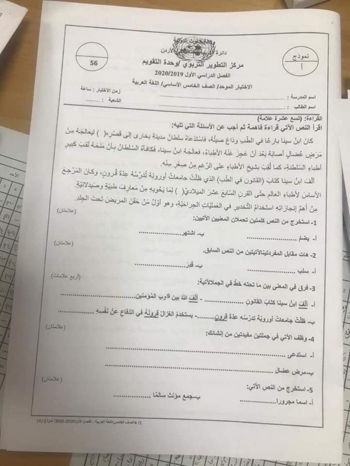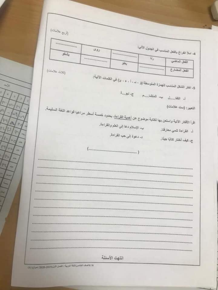 صور امتحان نهائي لمادة اللغة العربية للصف الخامس الفصل الاول 2019 نموذج أ وكالة صور اختبار نهائي لمادة اللغة العربية للصف الخامس الفصل الاول 2019 نموذج أ وكالة