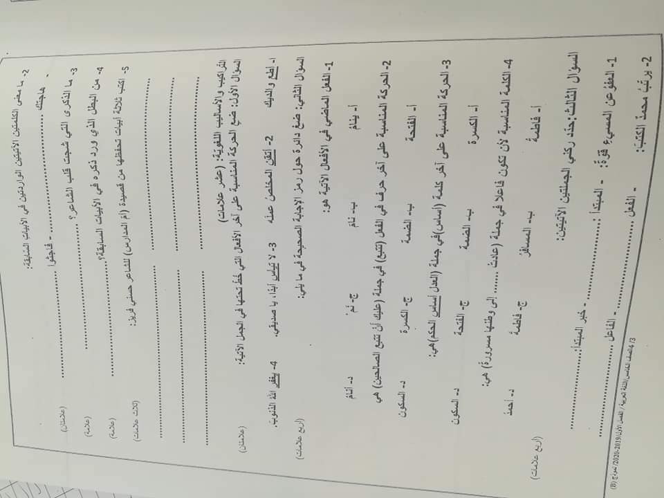 صور اختبار نهائي لمادة اللغة العربية للصف الخامس الفصل الاول 2019 نموذج ب وكالة صور امتحان نهائي لمادة اللغة العربية للصف الخامس الفصل الاول 2019 نموذج ب وكالة