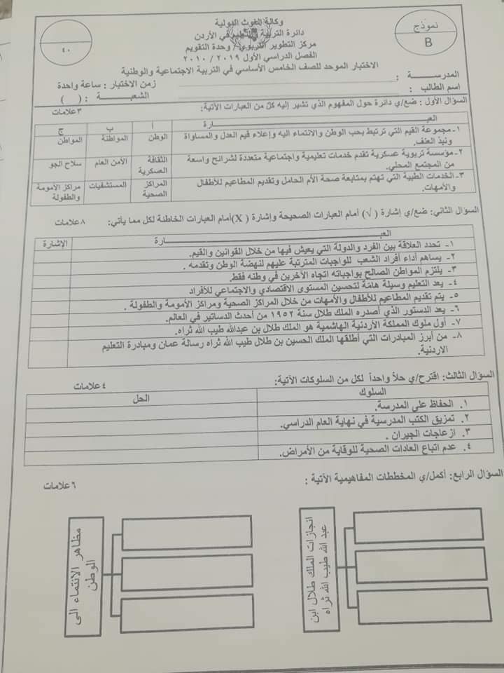 صور اختبار نهائي لمادة التربية الاجتماعية الاجتماعيات للصف الخامس الفصل الاول 2019 نموذج B وكالة صور امتحان نهائي لمادة التربية الاجتماعية الاجتماعيات للصف الخامس الفصل الاول 2019 نموذج B وكالة