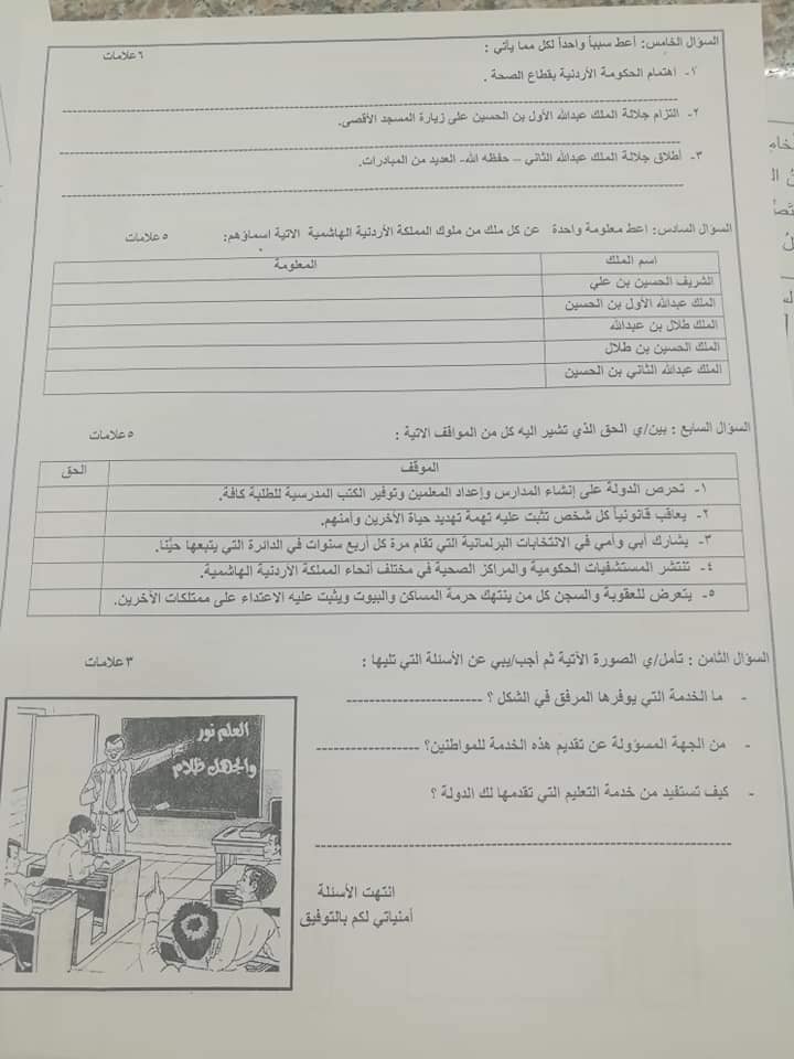 صور اختبار نهائي لمادة التربية الاجتماعية الاجتماعيات للصف الخامس الفصل الاول 2019 نموذج B وكالة
