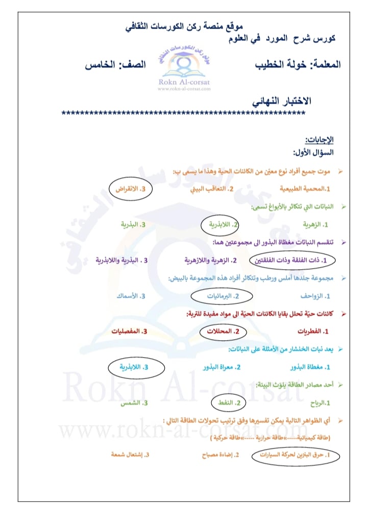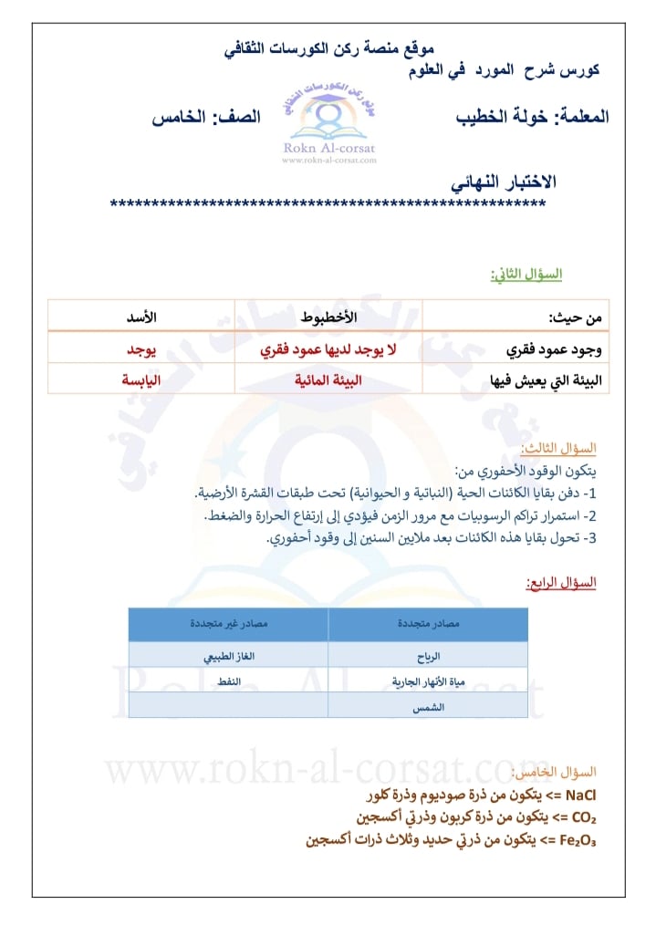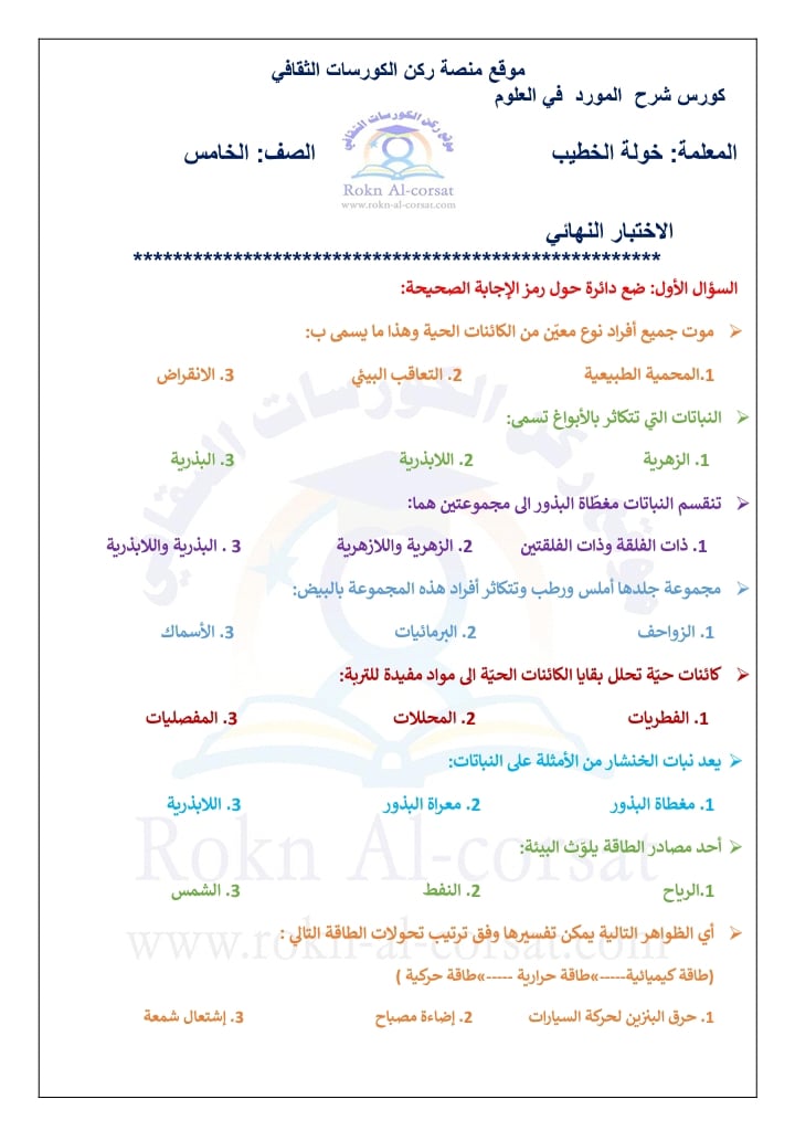 صور امتحان نهائي لمادة العلوم للصف الخامس الفصل الاول 2021 مع الاجابات صور اختبار نهائي لمادة العلوم للصف الخامس الفصل الاول 2021 مع الاجابات صور امتح