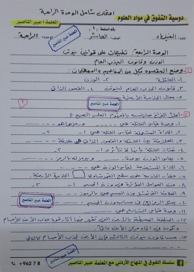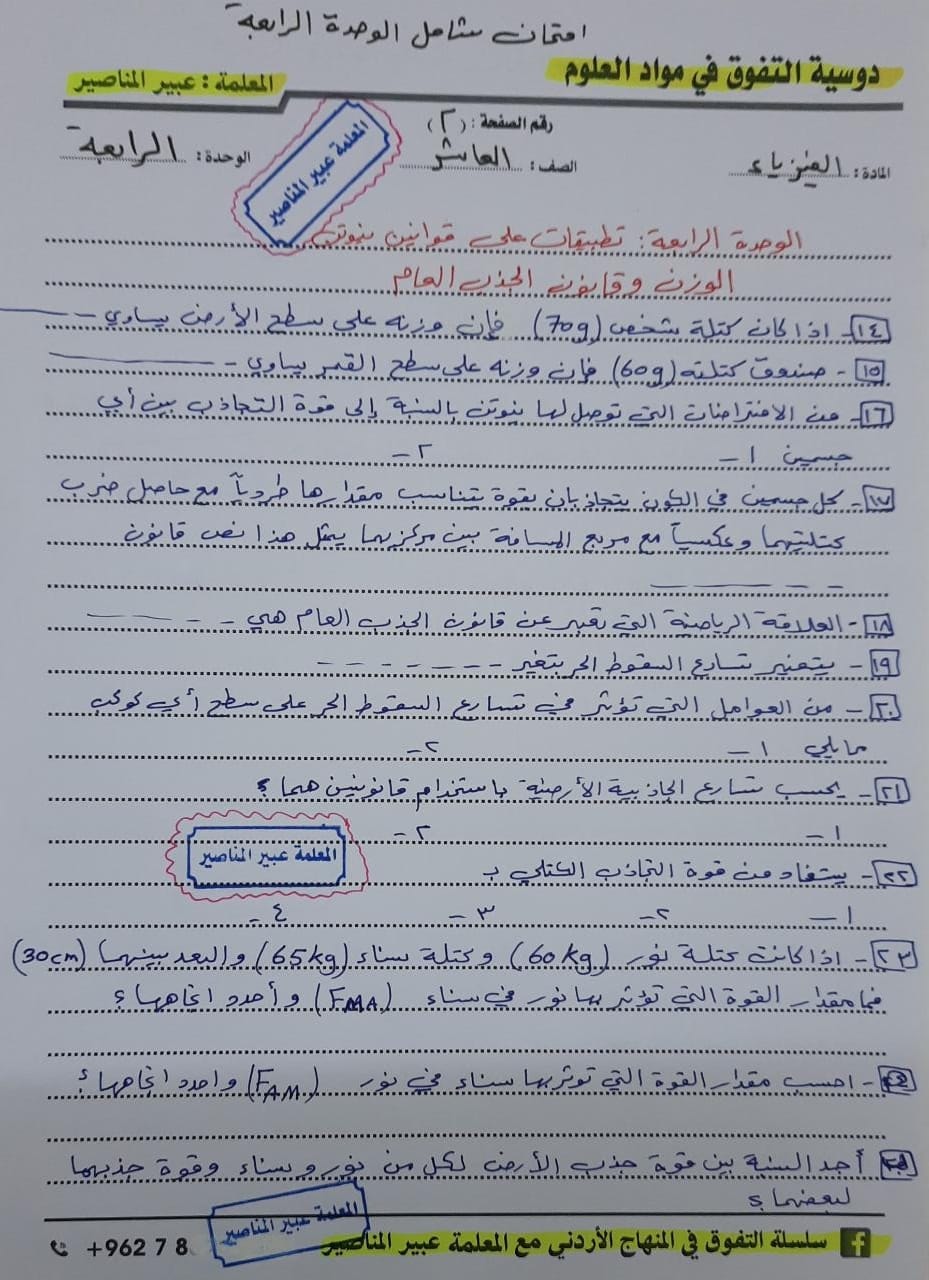 صور نموذج اختبار الشهر الاول لمادة الفيزياء للصف العاشر الفصل الثاني 2022 صور نموذج امتحان في الوحدة الرابعة الشهر الاول لمادة الفيزياء للصف العاشر ال
