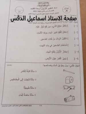 صور امتحان نهائي علوم صف اول فصل ثاني 2025 نموذج (A) وكالة