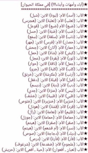 اسماء اباء و امهات و ابناء بعض الحيوانات في اللغة العربية