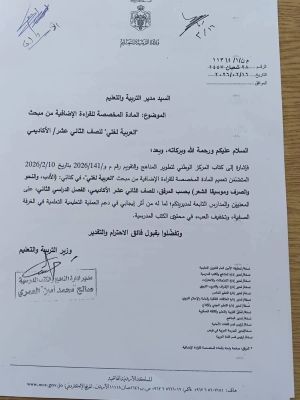 المواضيع المحذوفة من مادة اللغة العربية للصف الثاني الثانوي جيل 2008 للفصل الدراسي الثاني 2026