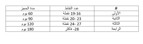 يتم وقف العمل برخص القيادة من تاريخ الحجز الفعلي وعلى النحو التالي: