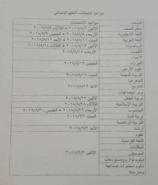 عممت وزارة التربية والتعليم على الميدان التربوي مواعيد عقد الامتحان للمعلمين المتقدمين للعمل على حساب التعليم الإضافي، وحددت علامة النجاح في الامتحان 50 بالمئة.
