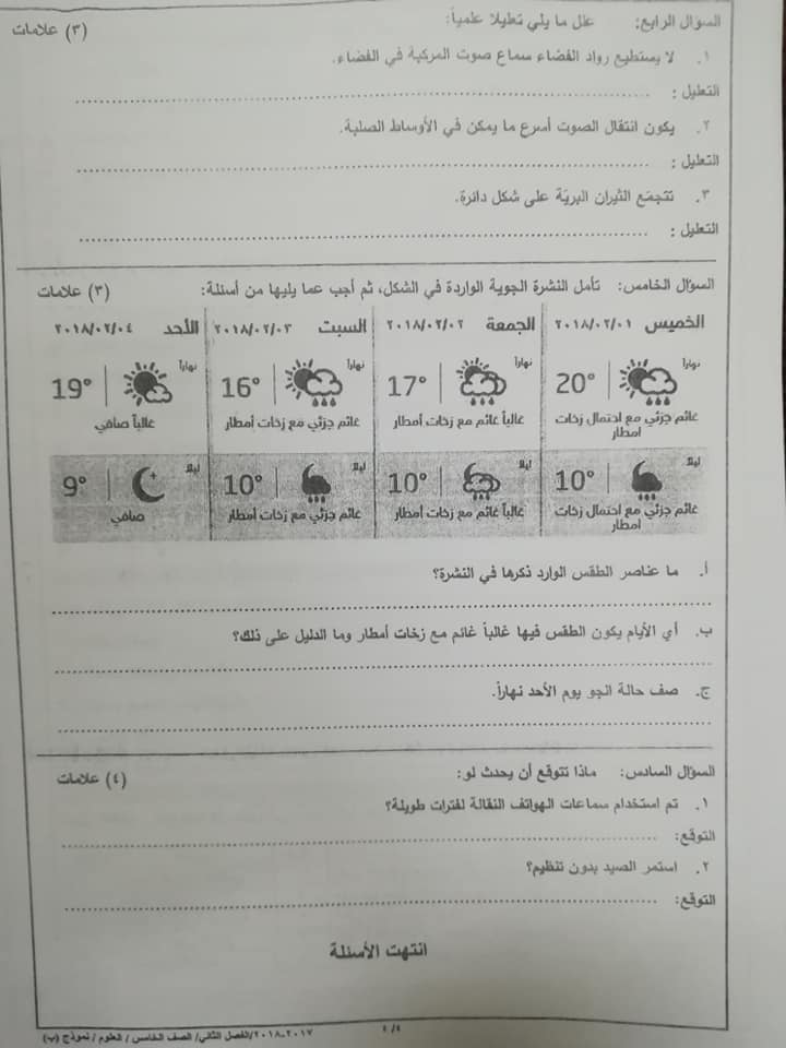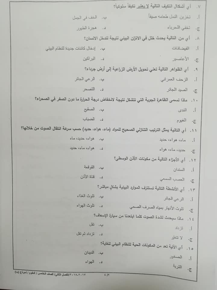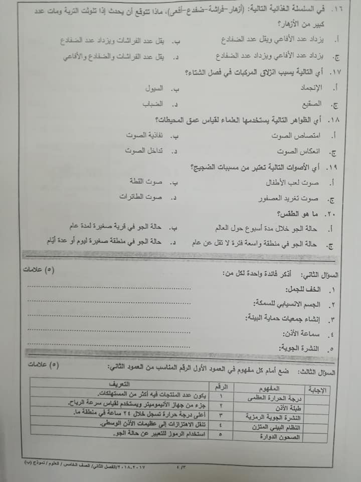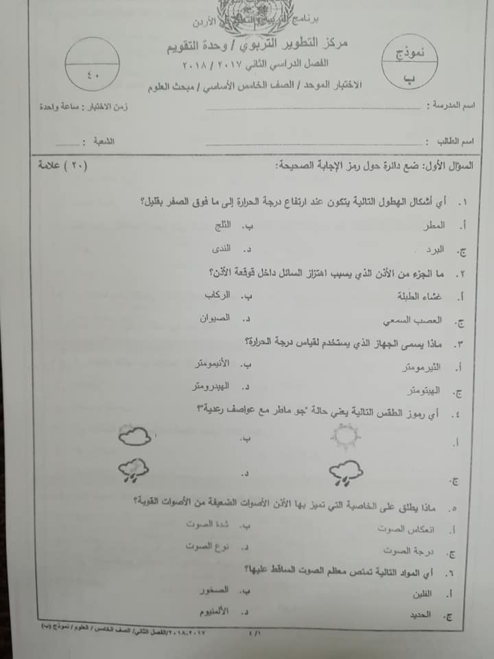 بالصور اختبار وكالة نموذج B مادة العلوم للصف الخامس الفصل الثاني 2018 بالصور اختبار وكالة نموذج B مادة العلوم للصف الخامس الفصل الثاني 2018