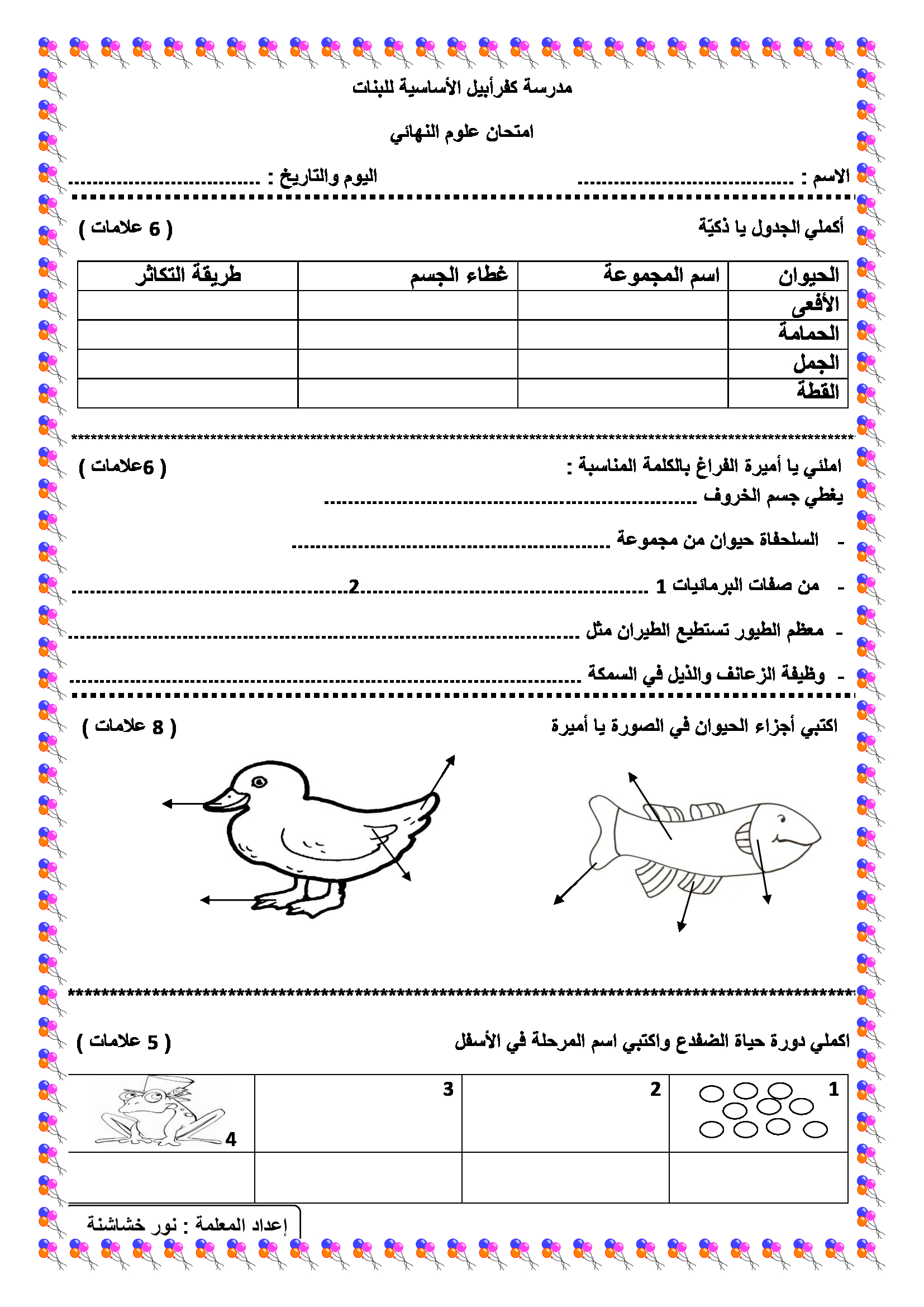امتحان نهائي لمادة العلوم للصف الثالث الفصل الثاني 2019 اختبار نهائي لمادة العلوم للصف الثالث الفصل الثاني 2019 اختبار نهائي لمادة العلوم للصف الثالث