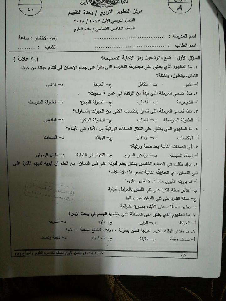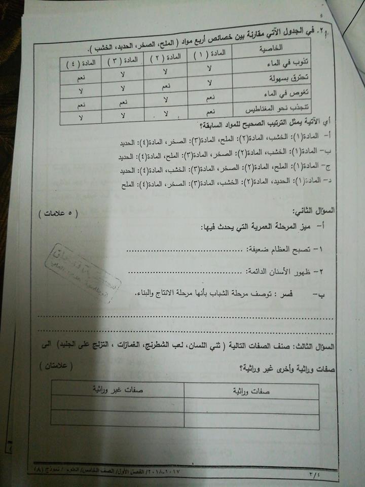 بالصور نموذج وكالة اختبار مادة العلوم نهائي للصف الخامس الفصل الاول 2017 بالصور نموذج وكالة اختبار مادة العلوم نهائي للصف الخامس الفصل الاول 2017
