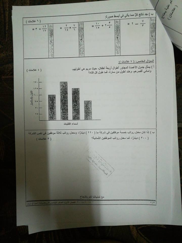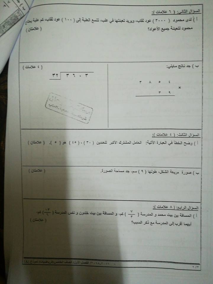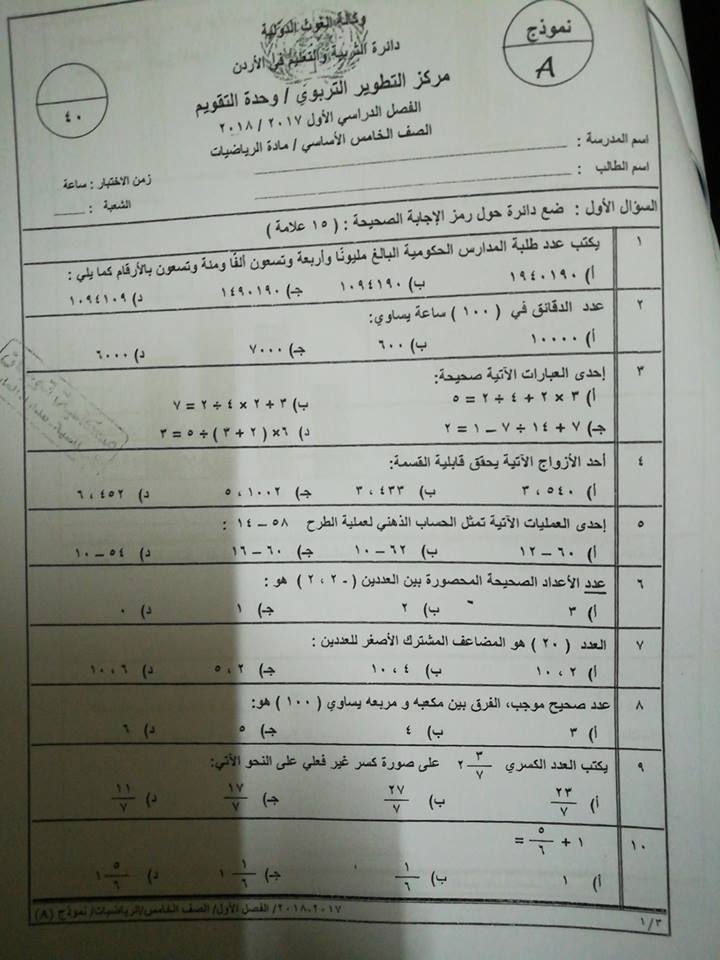 بالصور نموذج وكالة اختبار الرياضيات النهائي للصف الخامس الفصل الاول 2017 بالصور نموذج وكالة اختبار الرياضيات النهائي للصف الخامس الفصل الاول 2017