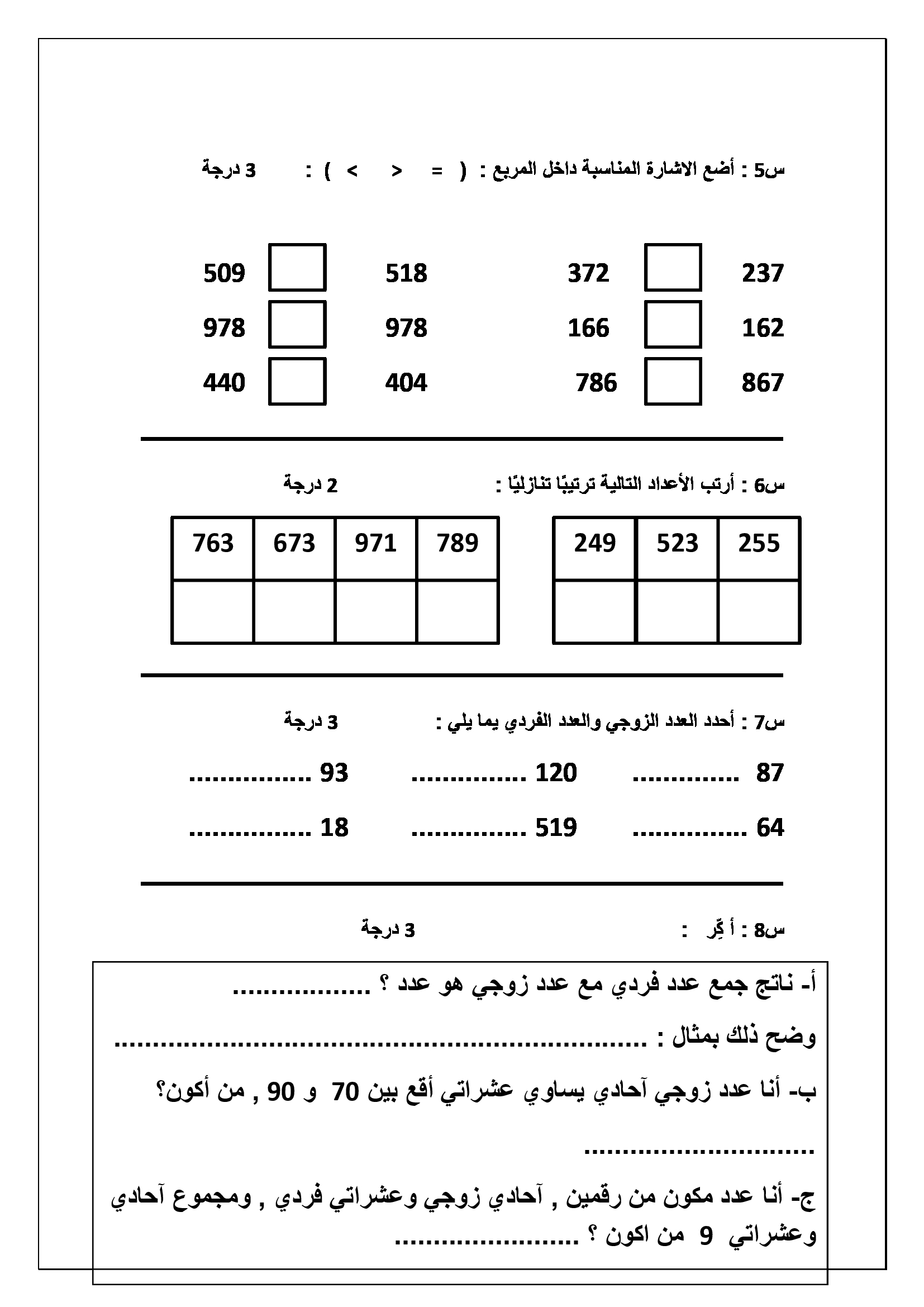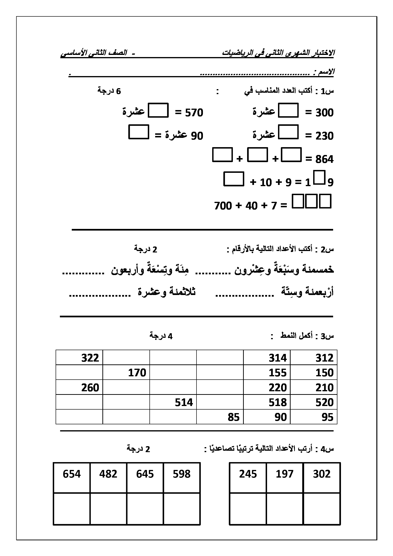 امتحان الشهر الثاني لمادة الرياضيات للصف الثاني الفصل الاول 2017 اختبار الشهر الثاني لمادة الرياضيات للصف الثاني الفصل الاول 2017 اختبار الشهر الثاني