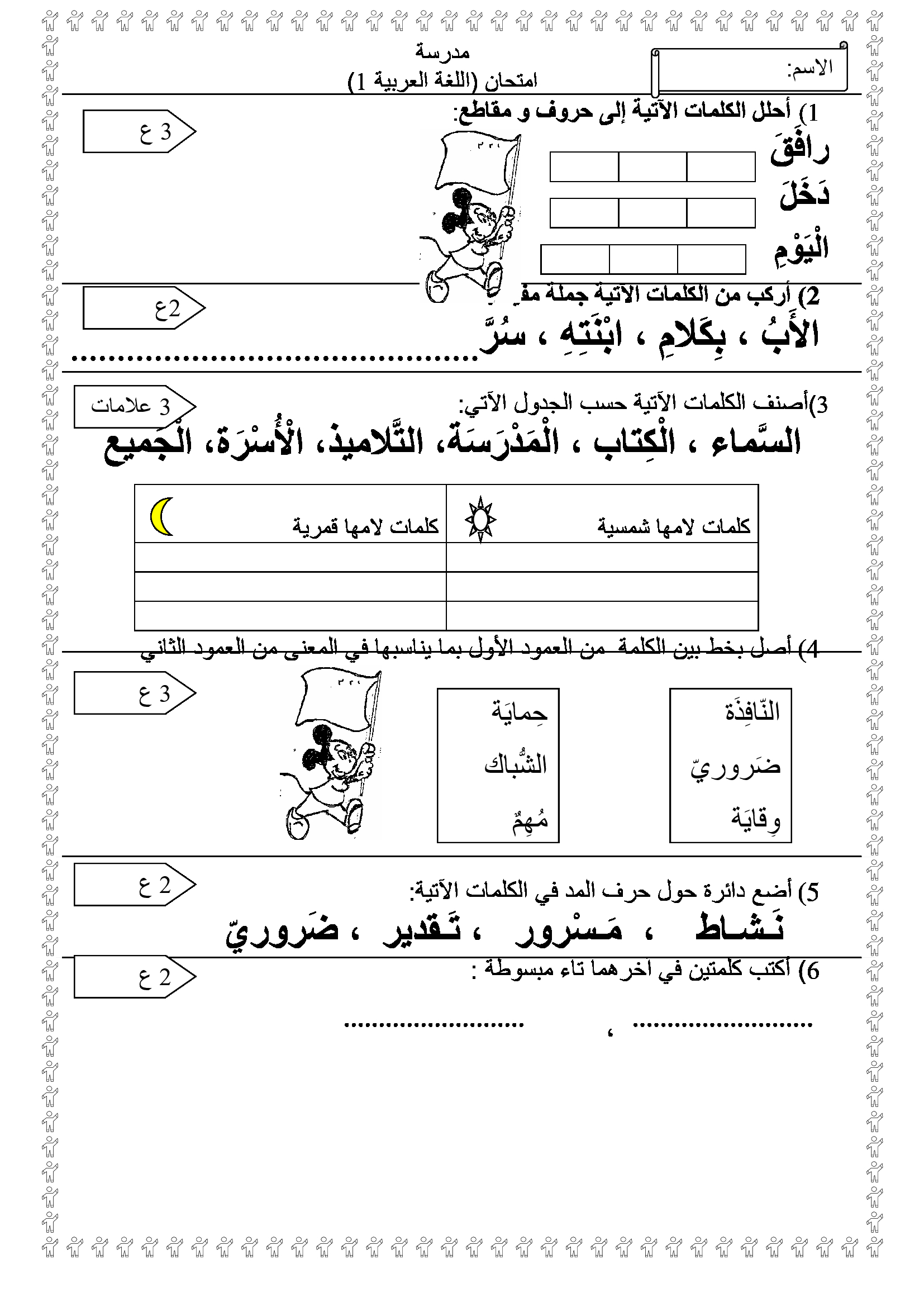 امتحان اللغة العربية الشهر الاول للصف الثاني الفصل الاول 2017 اختبار اللغة العربية الشهر الاول للصف الثاني الفصل الاول 2017 اختبار اللغة العربية الشهر