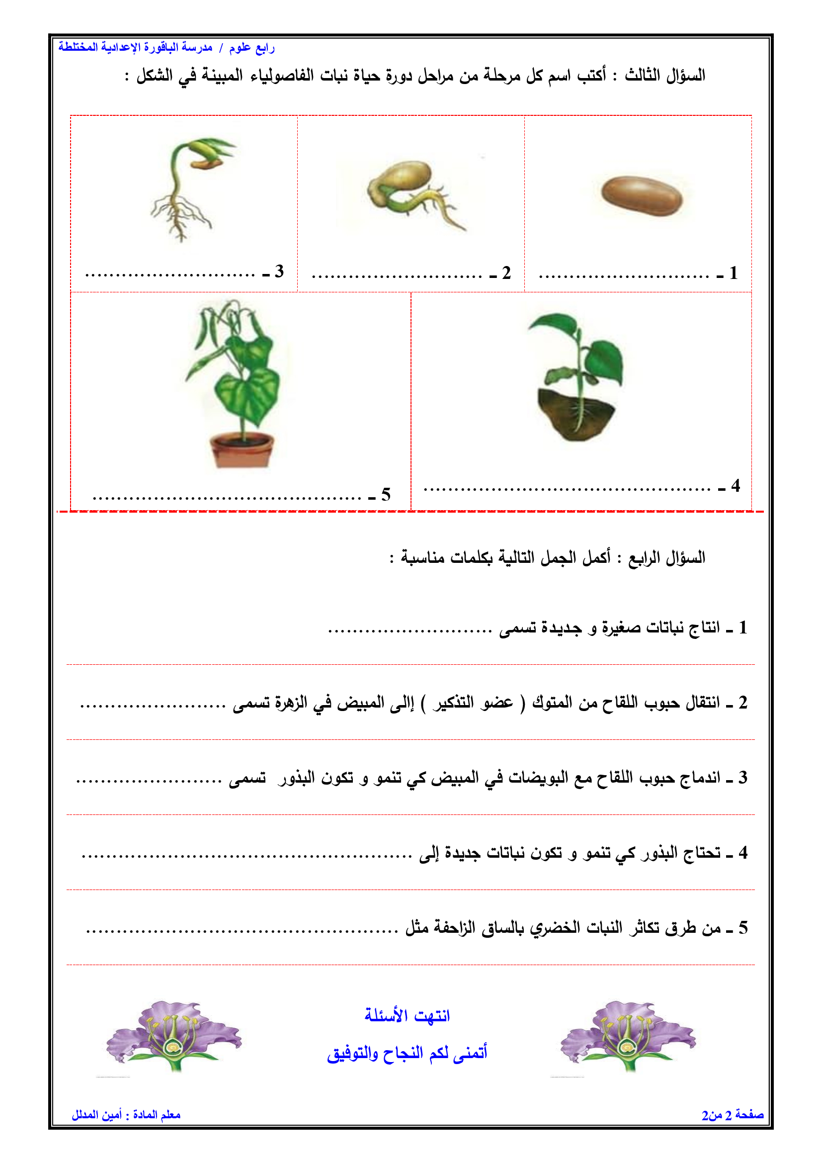 امتحان الشهر الاول لمادة التربية المهنية للصف الرابع الفصل الثاني 2026 مع الاجابات