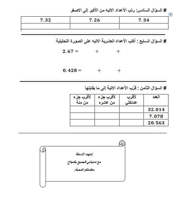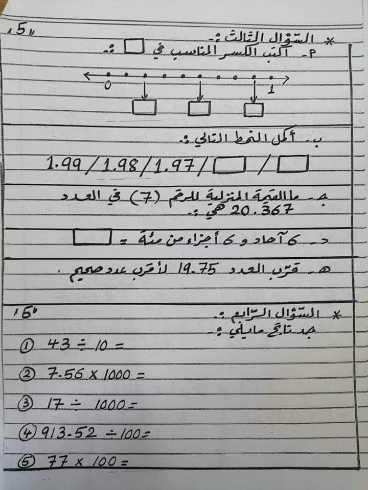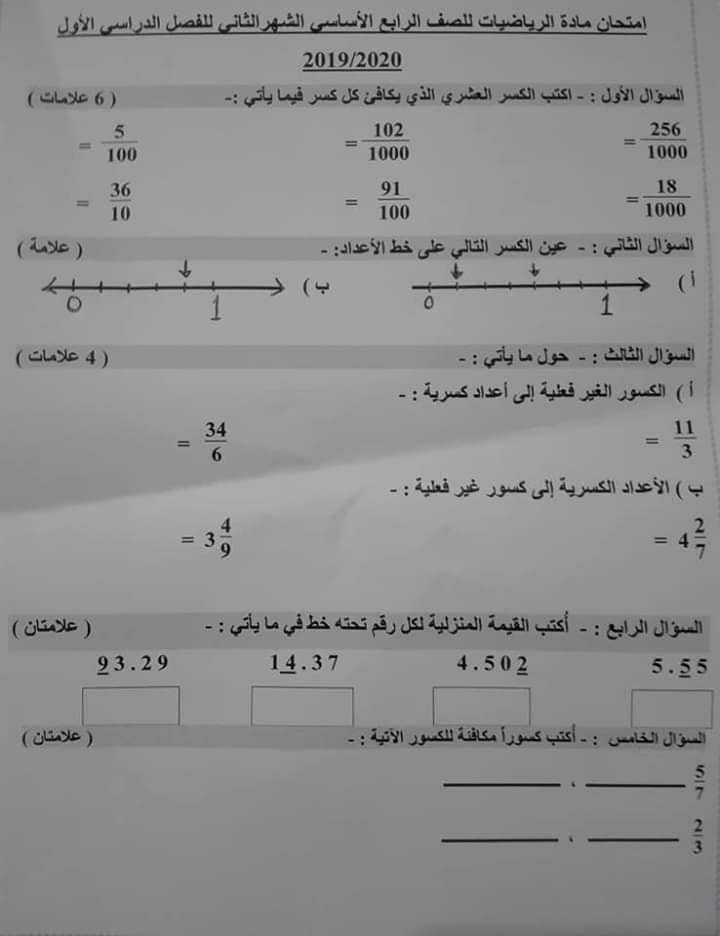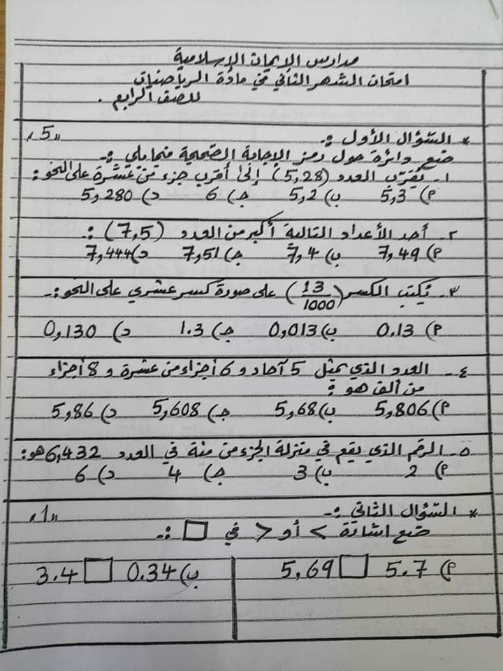 بالصور اختبار الرياضيات الشهر الثاني للصف الرابع الفصل الاول 2019 بالصور امتحان الرياضيات الشهر الثاني للصف الرابع الفصل الاول 2019 بالصور امتحان الري