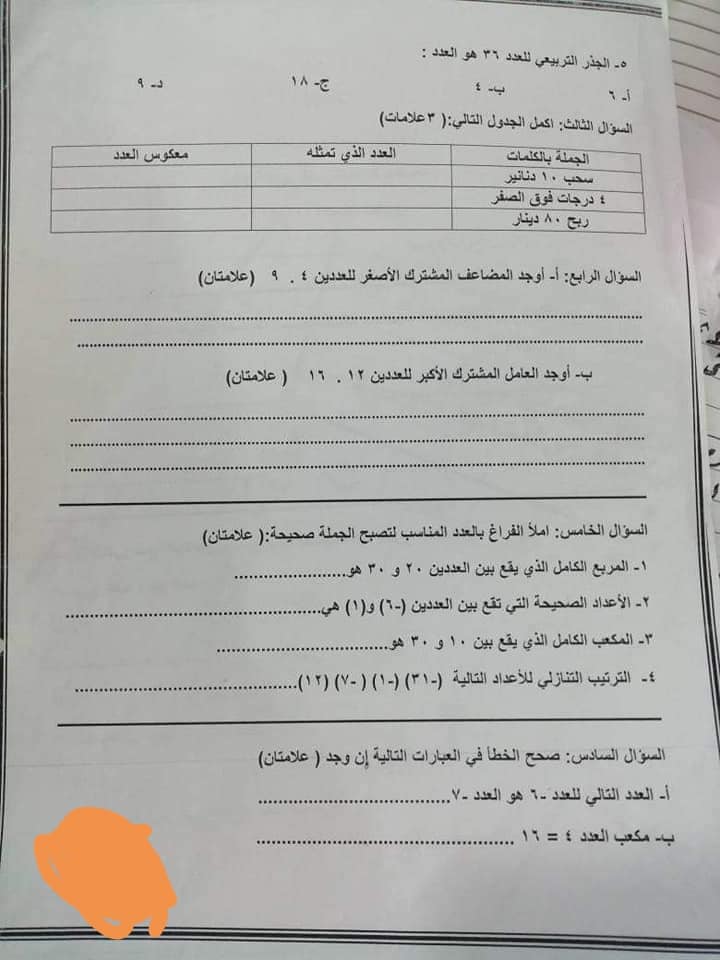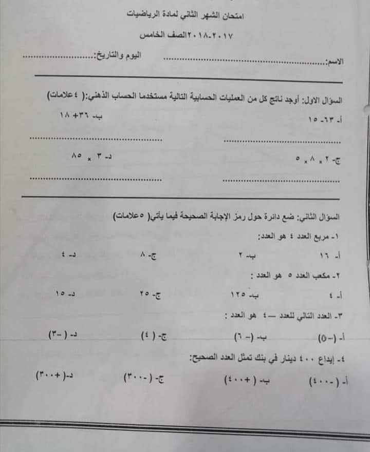 بالصور اختبار الرياضيات الشهر الثاني للصف الخامس الفصل الاول 2018 بالصور امتحان الرياضيات الشهر الثاني للصف الخامس الفصل الاول 2018 بالصور امتحان الري