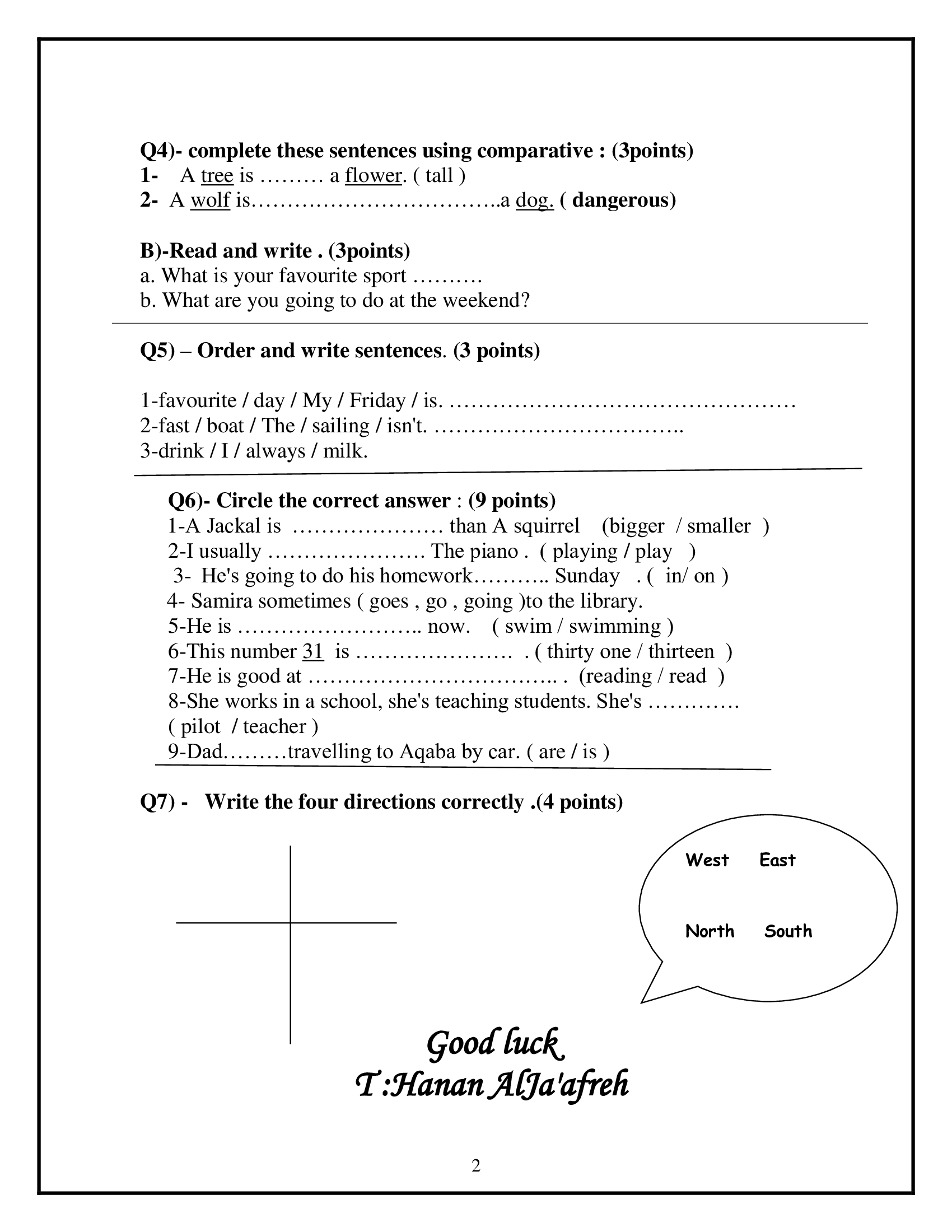 امتحان اللغة الانجليزية النهائي للصف الرابع الفصل الاول مع الاجابات 2016 اختبار اللغة الانجليزية النهائي الصف الرابع الفصل الدراسي الاول مع الاجابات 2