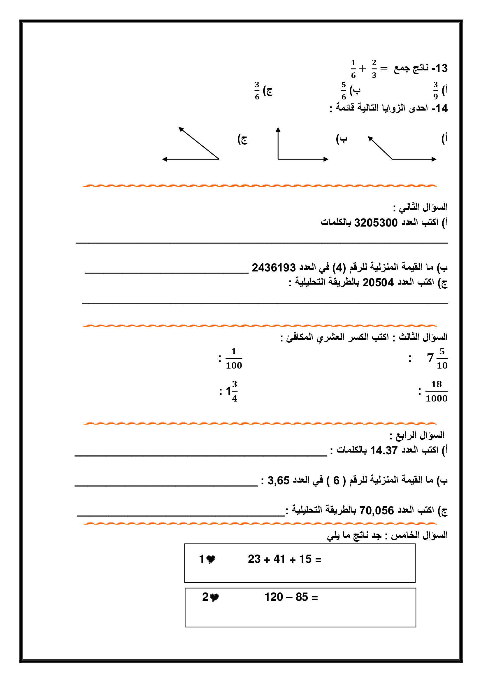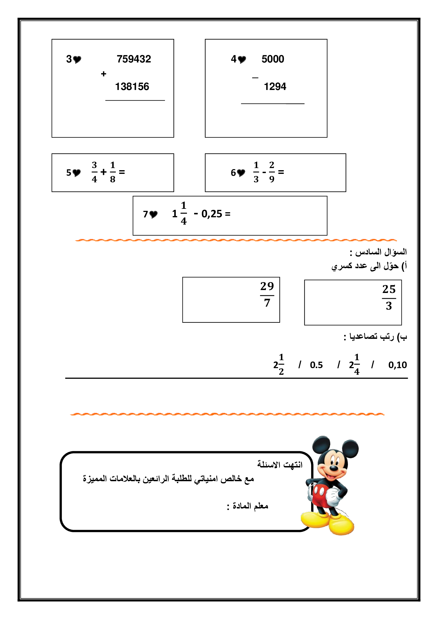 امتحان نهائي مقترح لمادة الرياضيات للصف الرابع الفصل الاول 2019 اختبار نهائي مقترح لمادة الرياضيات للصف الرابع الفصل الاول 2019 اختبار نهائي مقترح لما