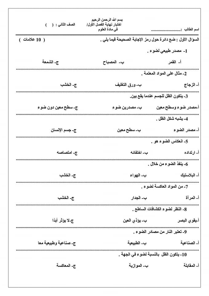 بالصور اختبار العلوم النهائي للصف الثاني الفصل الاول 2018 بالصور امتحان العلوم النهائي للصف الثاني الفصل الاول 2018 بالصور امتحان العلوم النهائي للصف