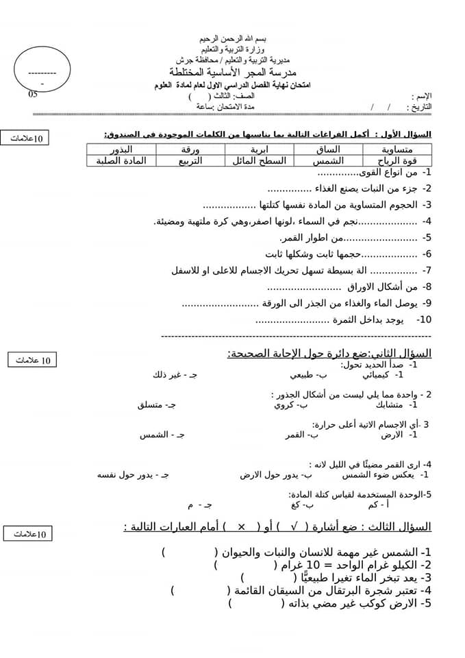 بالصور اختبار نهائي لمادة العلوم للصف الثالث الفصل الاول 2017 بالصور امتحان نهائي لمادة العلوم للصف الثالث الفصل الاول 2017 بالصور امتحان نهائي لمادة