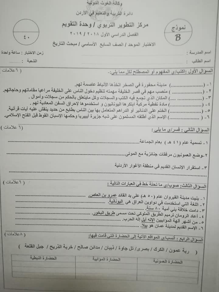 نموذج B وكالة امتحان التاريخ النهائي للصف السابع الفصل الاول 2018 نموذج B وكالة اختبار التاريخ النهائي للصف السابع الفصل الاول 2018 نموذج B وكالة اختب