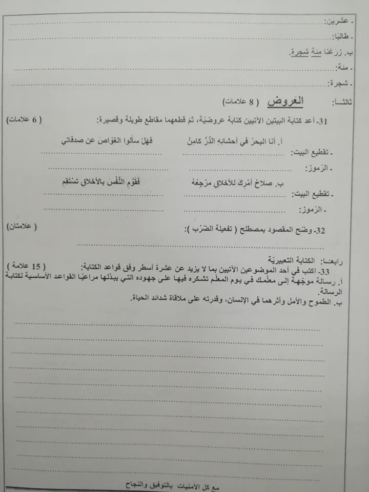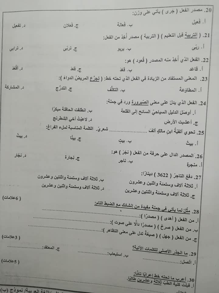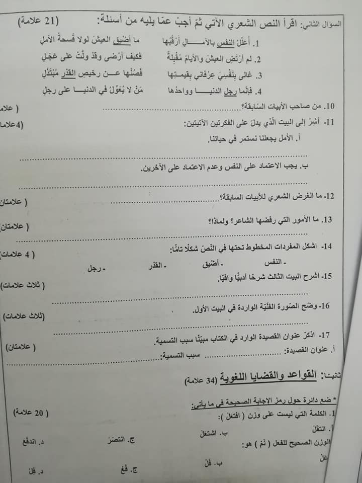 نموذج B وكالة امتحان اللغة العربية النهائي للصف العاشر الفصل الاول 2018 نموذج B وكالة اختبار اللغة العربية النهائي للصف العاشر الفصل الاول 2018 نموذج