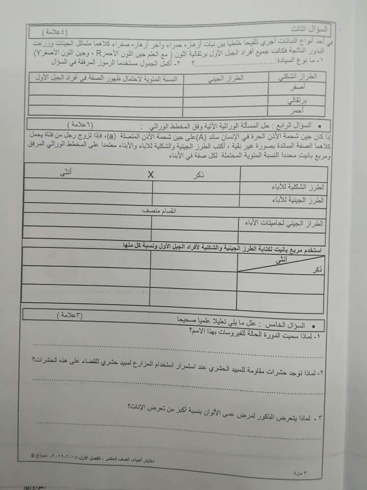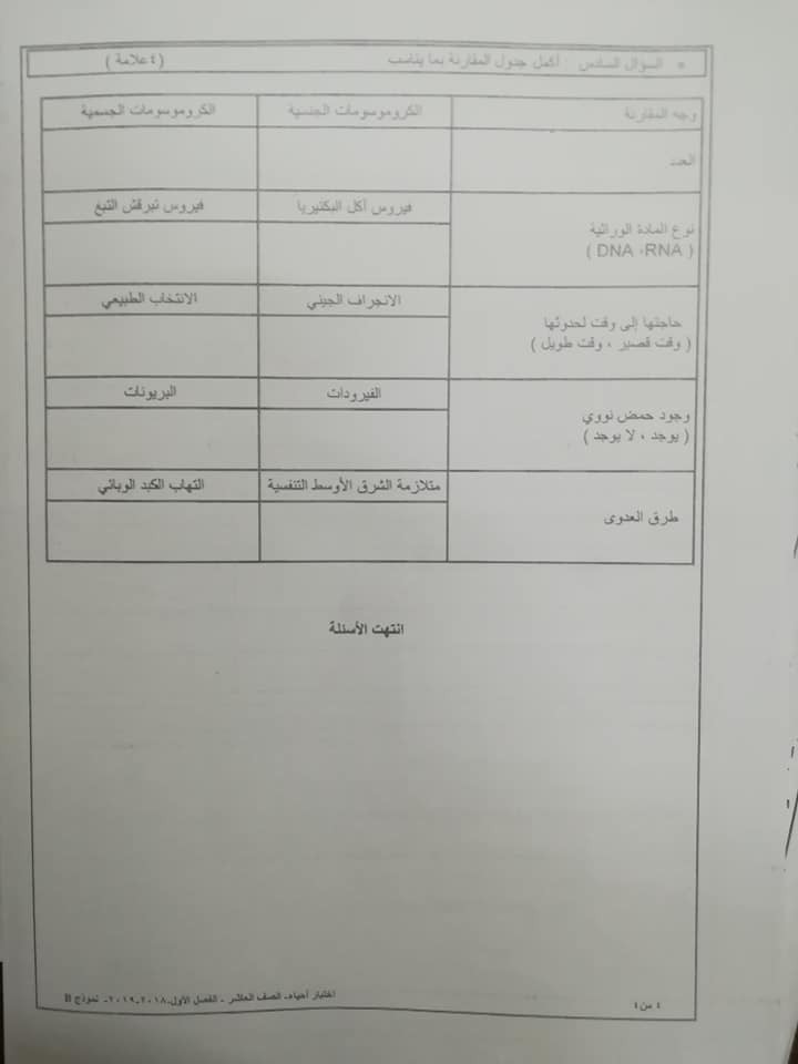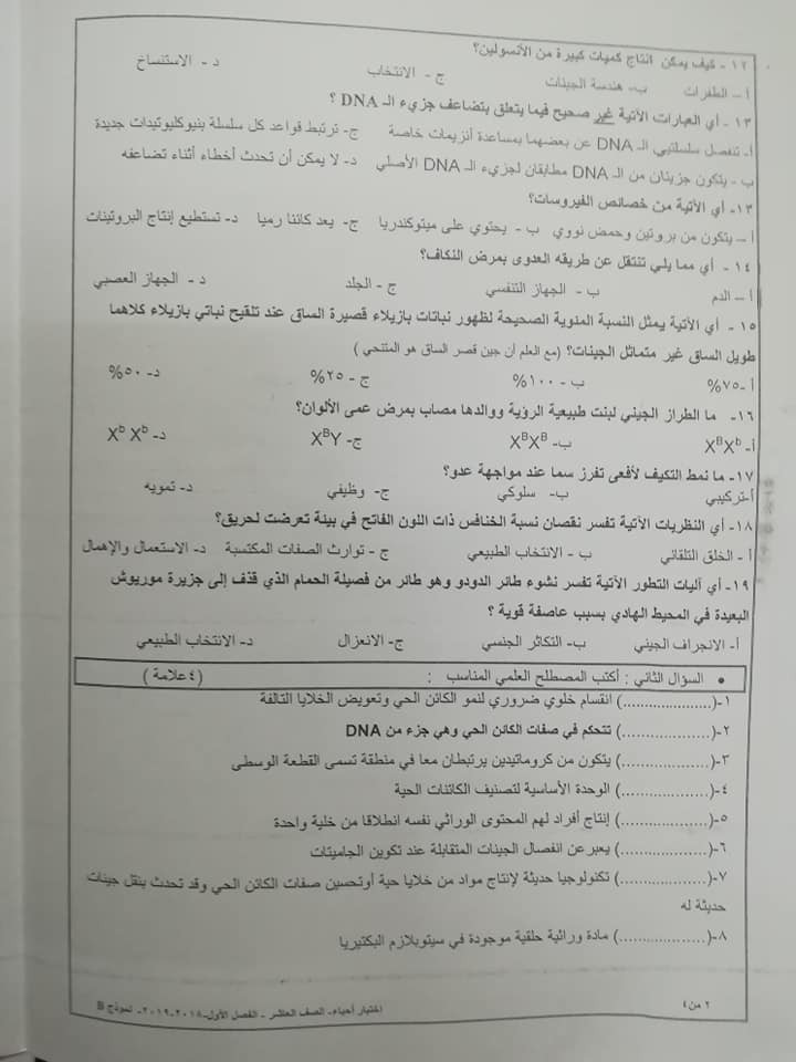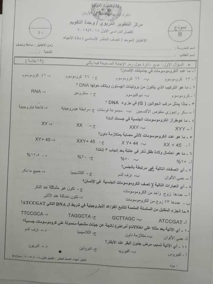 نموذج B وكالة امتحان العلوم الحياتية الاحياء النهائي للصف العاشر الفصل الاول 2018 نموذج B وكالة اختبار الاحياء النهائي للصف العاشر الفصل الاول 2018 نم