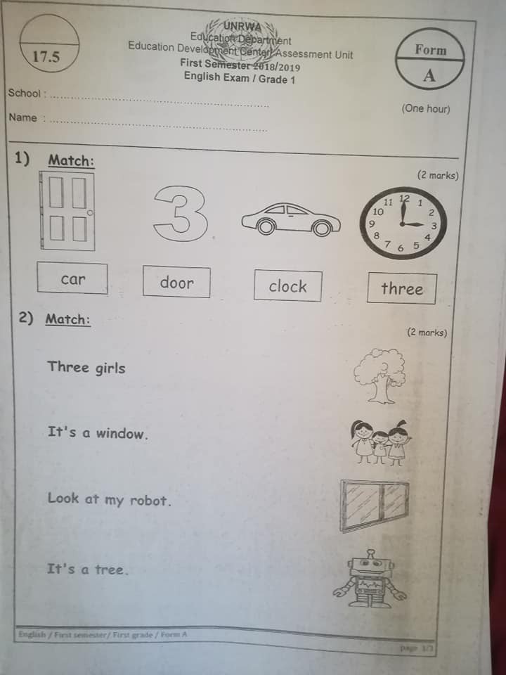 نموذج A وكالة اختبار اللغة الانجليزية النهائي للصف الاول الفصل الاول 2018 نموذج A وكالة امتحان اللغة الانجليزية النهائي للصف الاول الفصل الاول 2018 نم