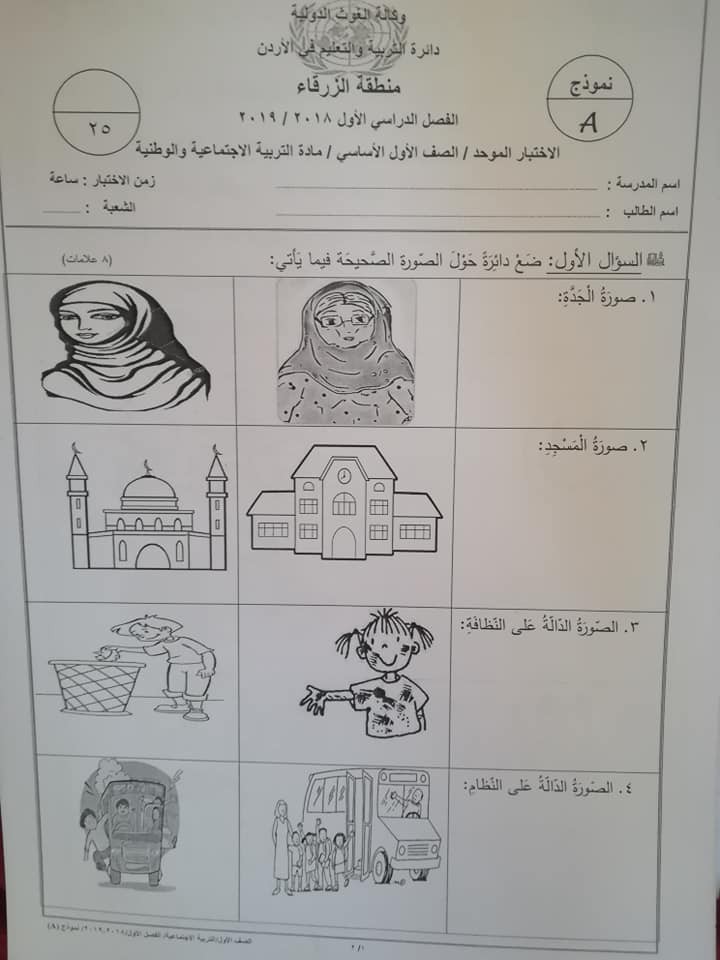 نموذج A وكالة امتحان التربية الاجتماعية و الوطنية الاجتماعيات النهائي للصف الاول الفصل الاول 2018 نموذج A وكالة امتحان الاجتماعيات النهائي للصف الاول الفصل الاول 2018