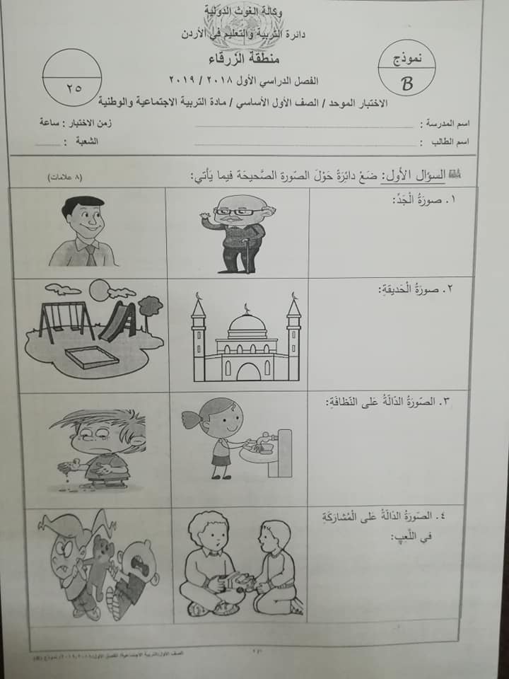 نموذج B وكالة امتحان التربية الاجتماعية و الوطنية الاجتماعيات النهائي للصف الاول الفصل الاول 2018 نموذج B وكالة اختبار الاجتماعيات النهائي للصف الاول الفصل الاول 2018