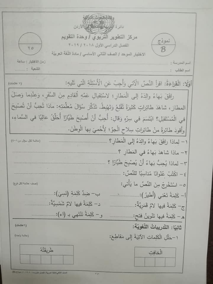 نموذج B وكالة امتحان اللغة العربية النهائي للصف الثاني الفصل الاول 2018 نموذج B وكالة اختبار اللغة العربية النهائي للصف الثاني الفصل الاول 2018 نموذج