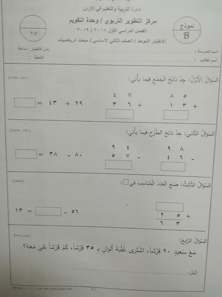 نموذج B وكالة امتحان الرياضيات النهائي للصف الثاني الفصل الاول 2018 نموذج B وكالة اختبار الرياضيات النهائي للصف الثاني الفصل الاول 2018 نموذج B وكالة