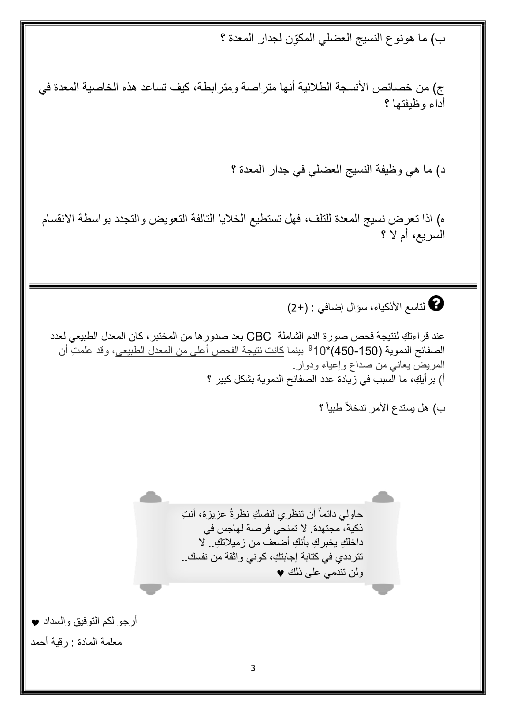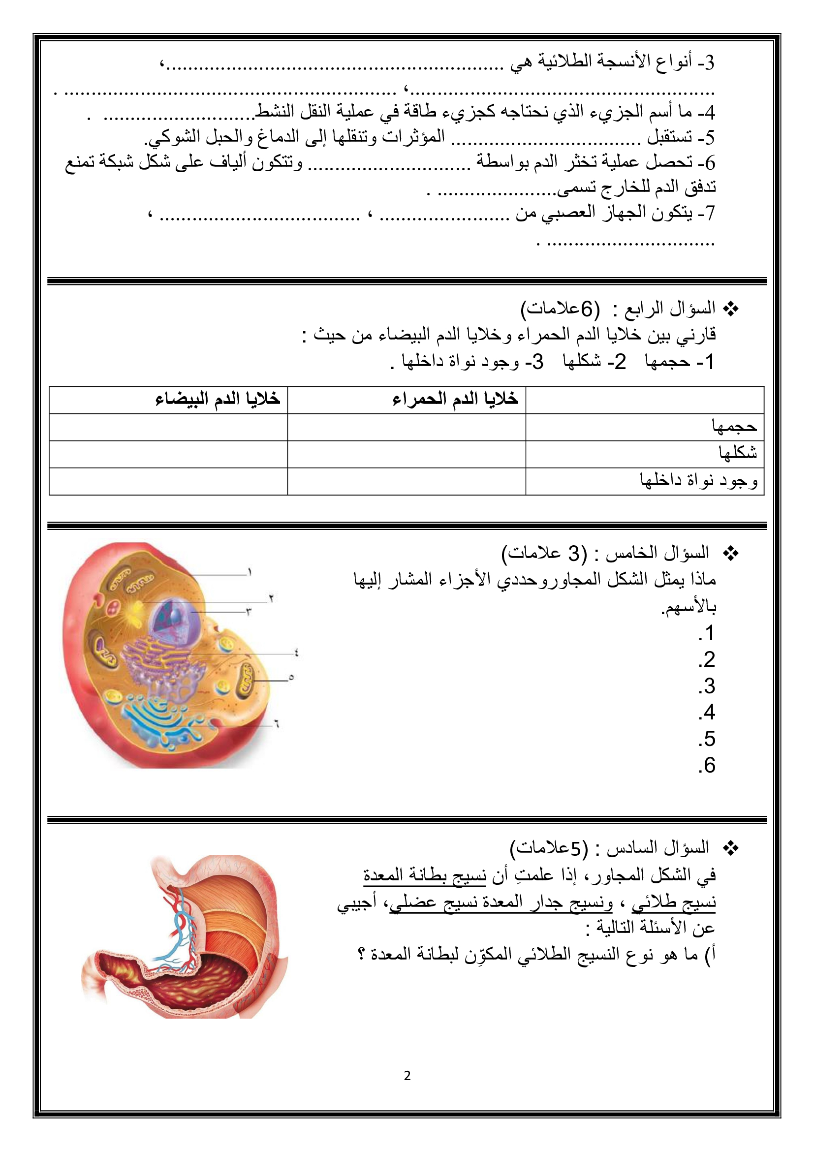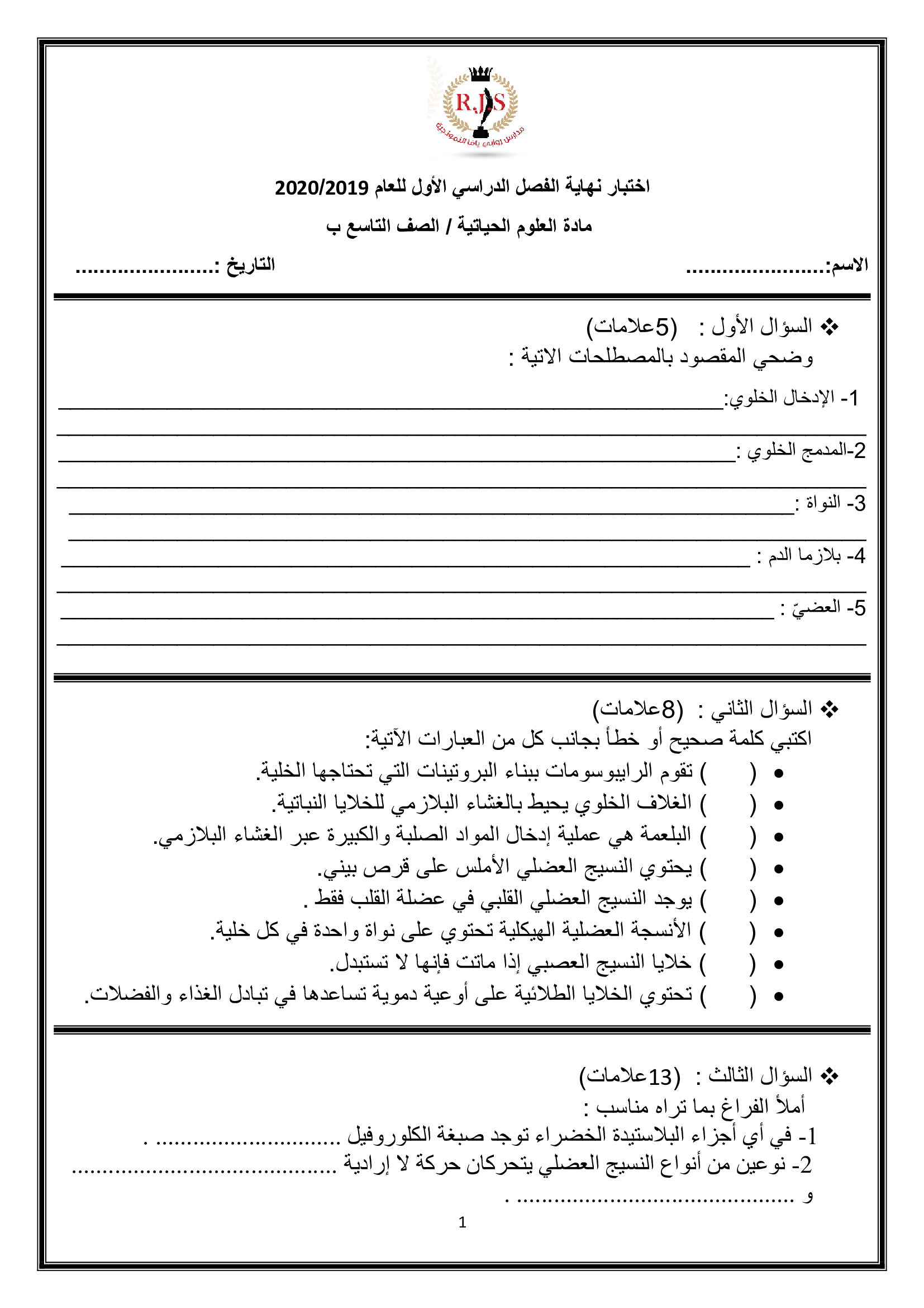 اختبار نهائي لمادة العلوم الحياتية الاحياء للصف التاسع الفصل الاول 2018 امتحان نهائي لمادة الاحياء للصف التاسع الفصل الاول 2018 امتحان نهائي لمادة الا