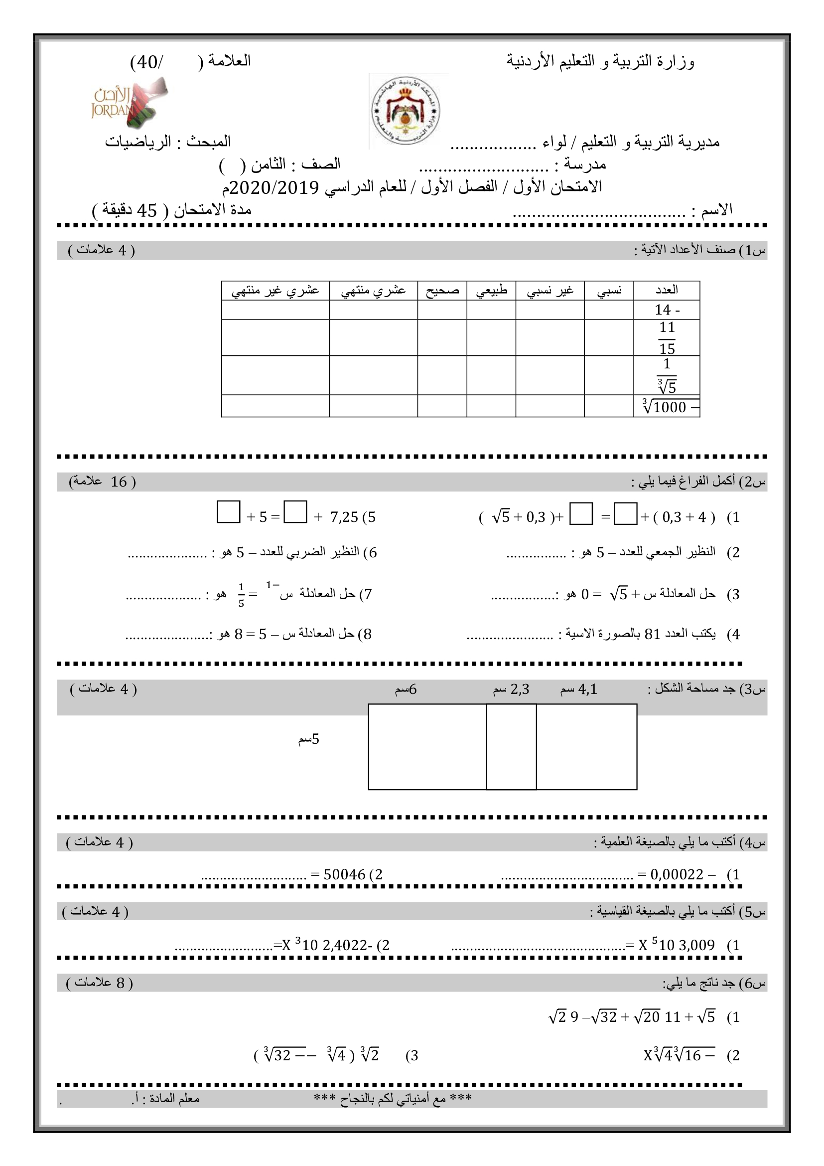 صورة و وورد اختبار الرياضيات الشهر الاول للصف الثامن الفصل الاول 2019 صورة و وورد امتحان الرياضيات الشهر الاول للصف الثامن الفصل الاول 2019 صورة و وور
