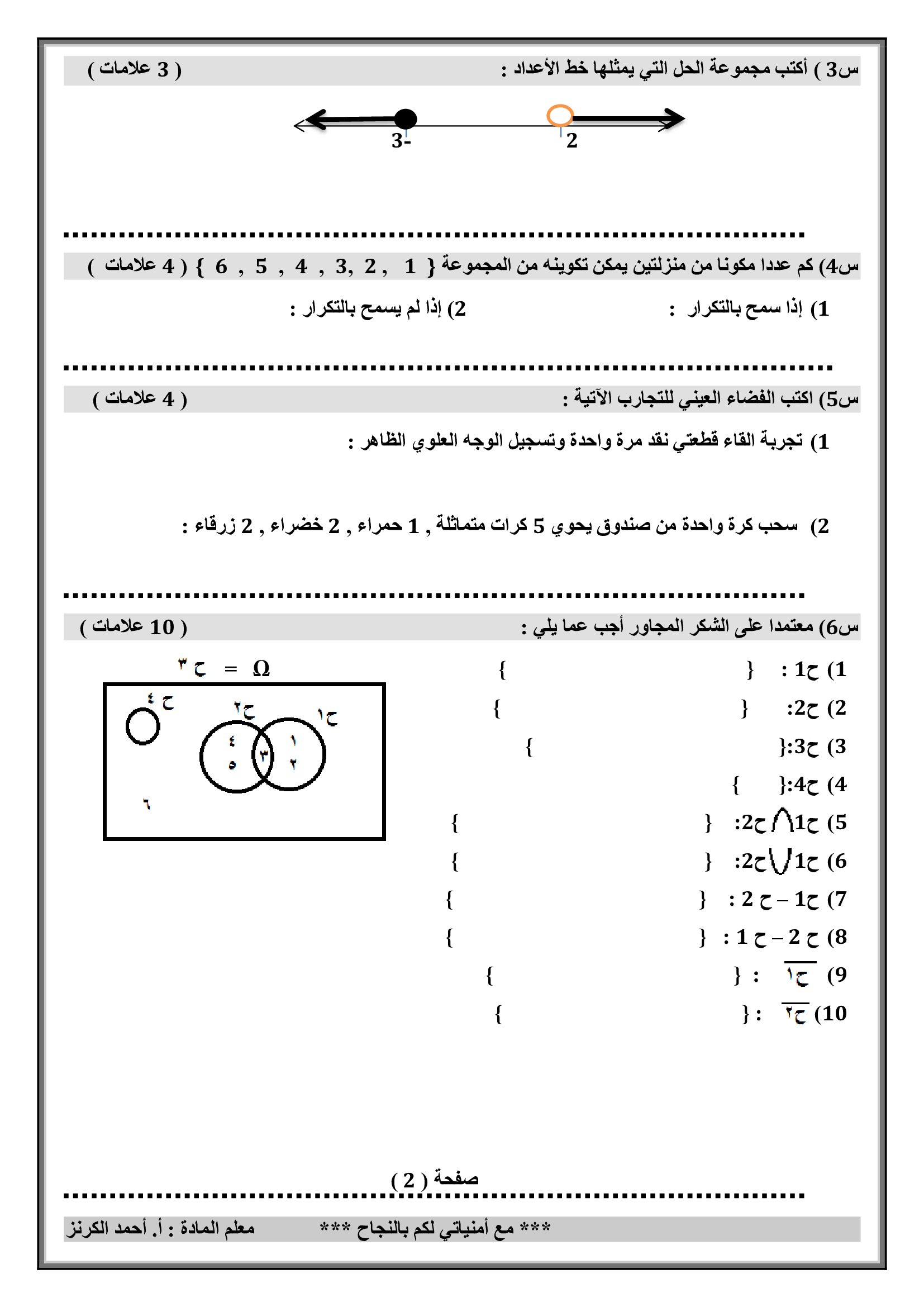 صور و وورد اختبار الرياضيات الشهر الثاني للصف التاسع الفصل الاول 2019 صور و وورد امتحان الرياضيات الشهر الثاني للصف التاسع الفصل الاول 2019 صور و وورد