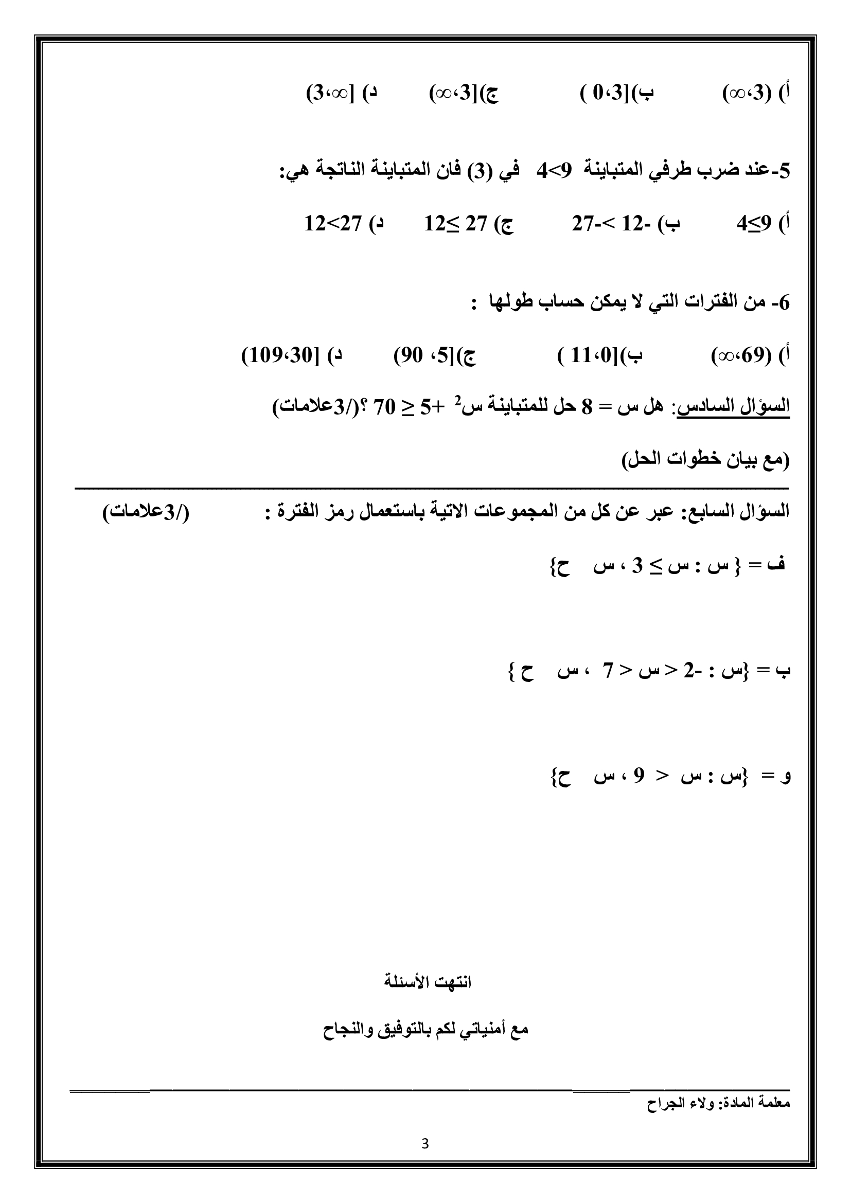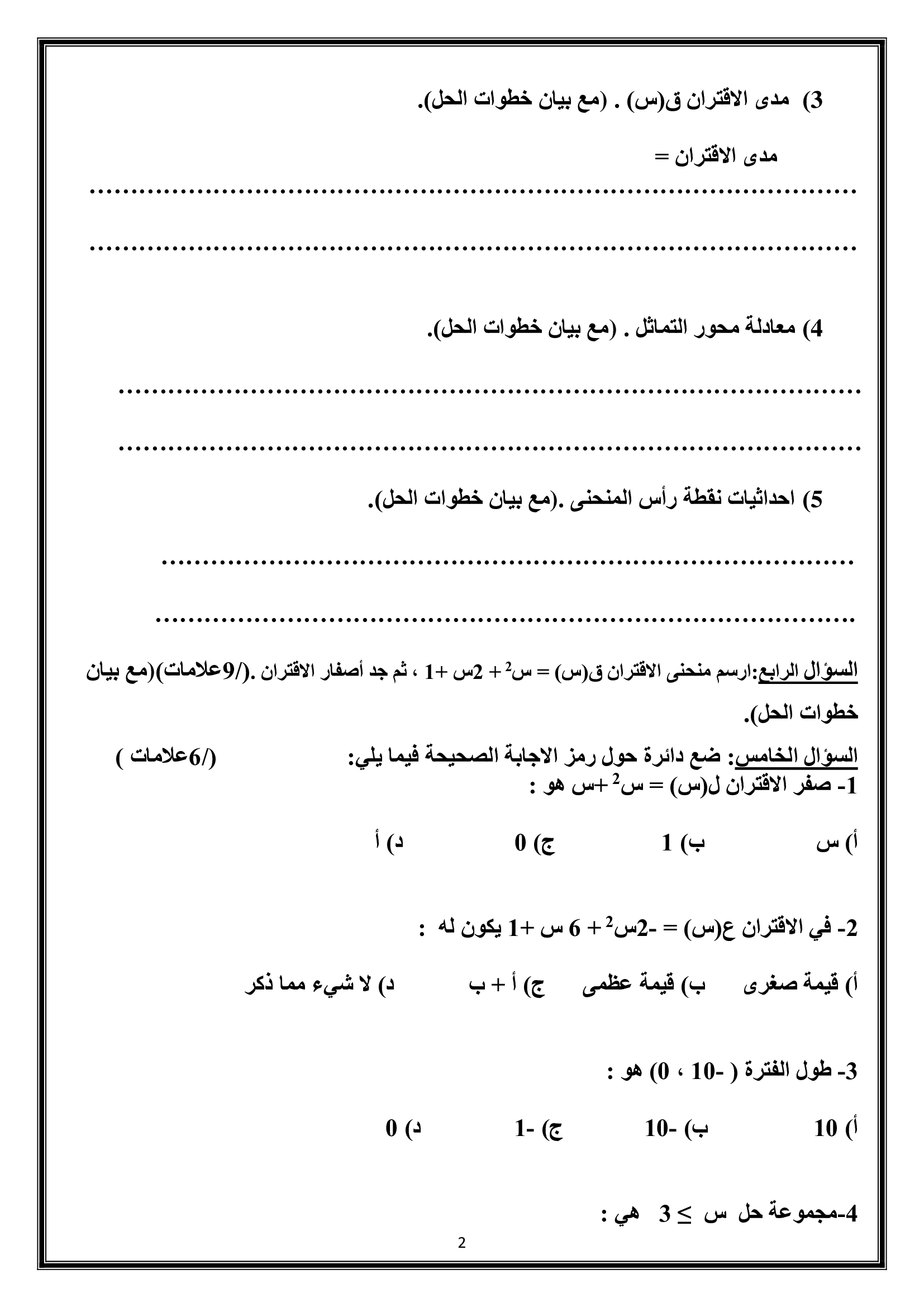 صور و وورد امتحان الرياضيات الشهر الثاني في الوحدة الثانية و اول درسين من الوحدة الثالثة للصف التاسع الفصل الاول 2018 صور و وورد اختبار الرياضيات الشهر الثاني للصف التاسع الفصل الاول 2018