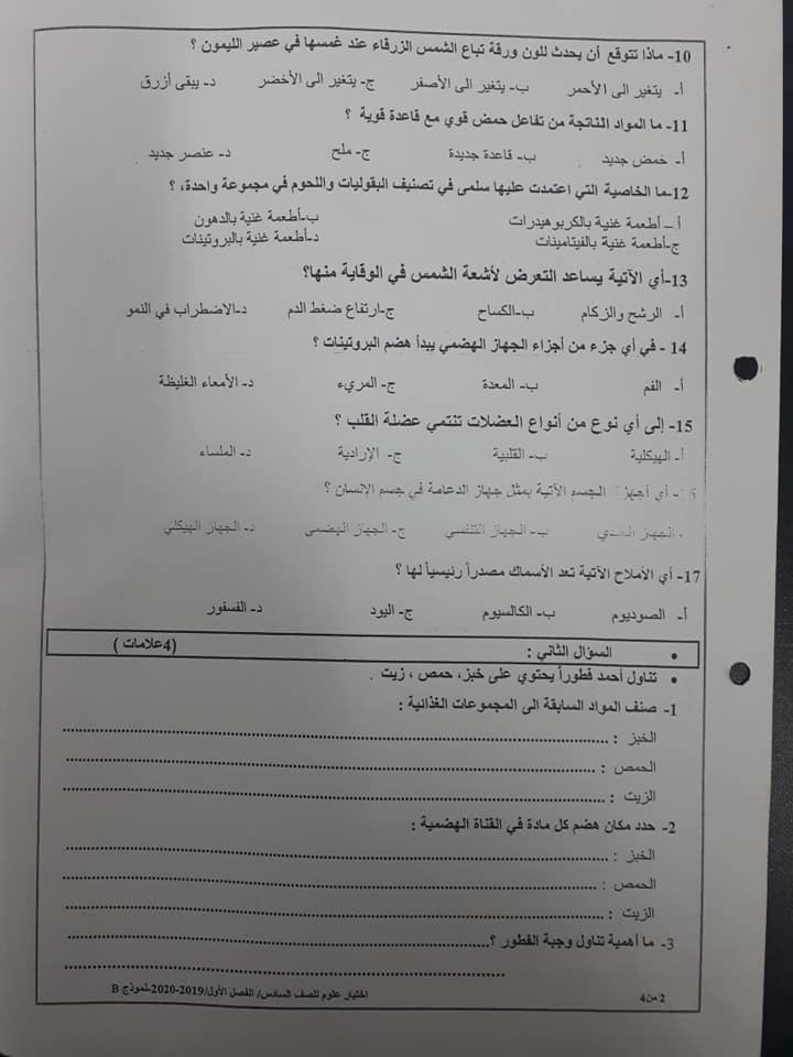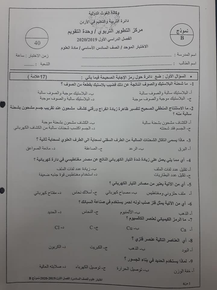 صور نموذج B وكالة اختبار العلوم للصف السادس الفصل الاول 2019 صور نموذج B وكالة امتحان العلوم للصف السادس الفصل الاول 2019 صور نموذج B وكالة امتحان الع