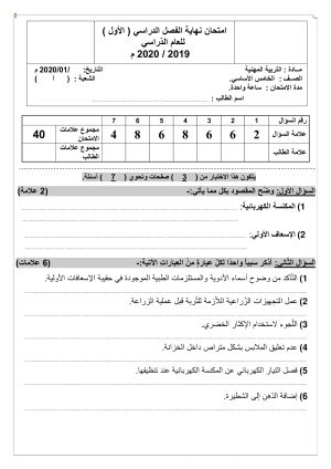امتحان التربية المهنية نهاية الفصل الدراسي الاول للصف الخامس 2020
