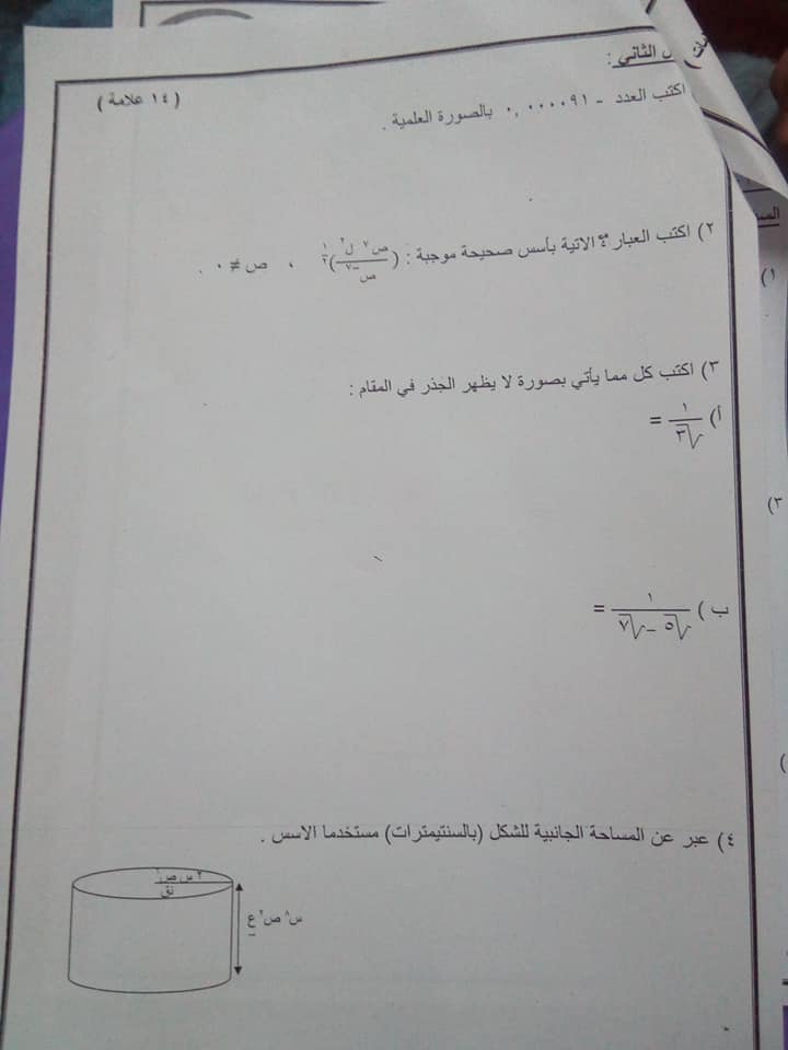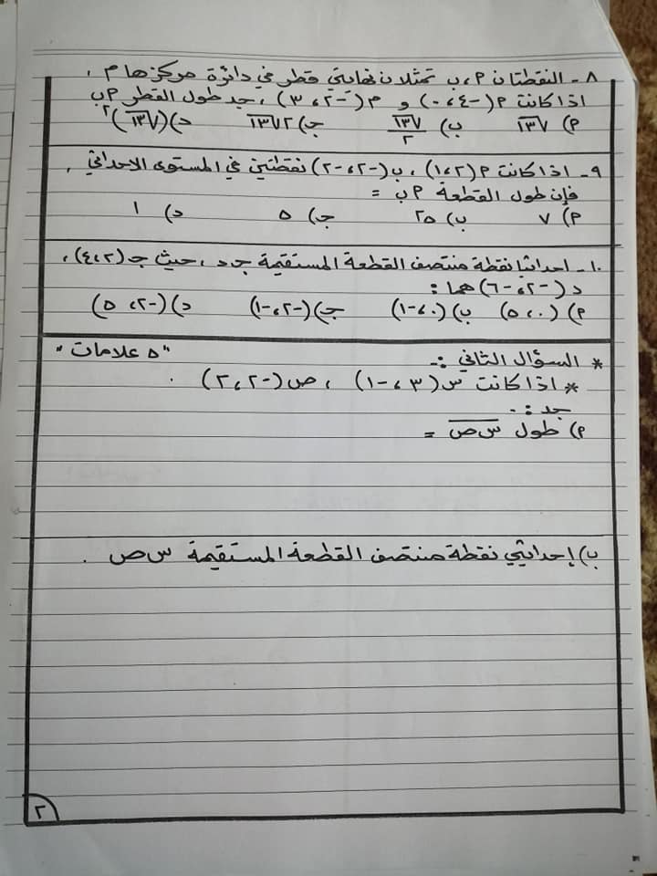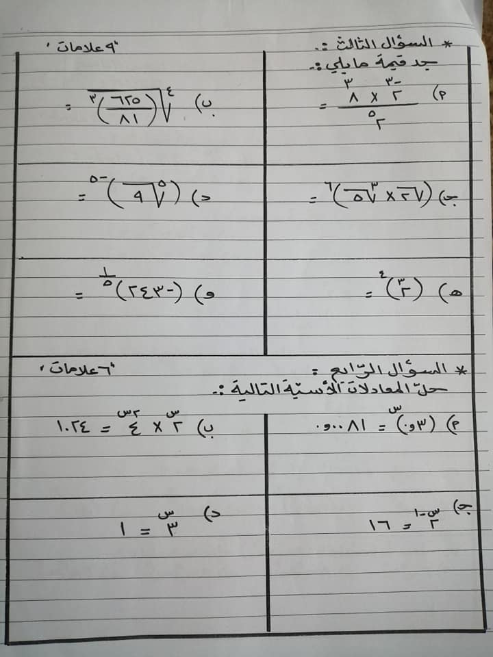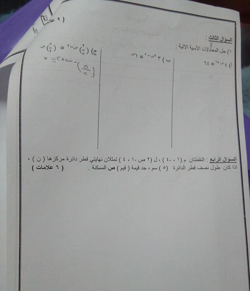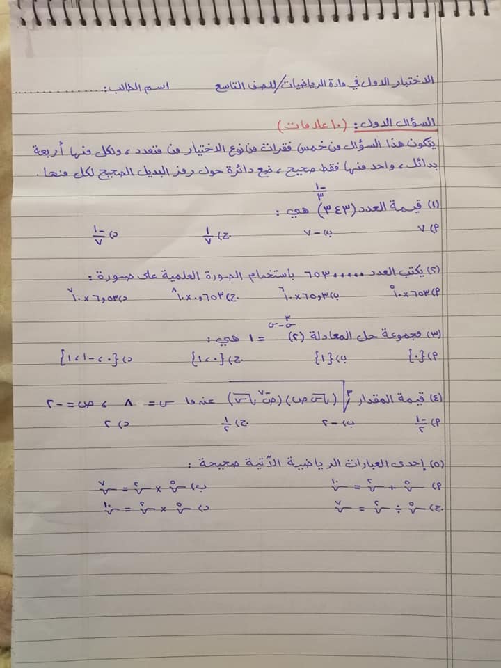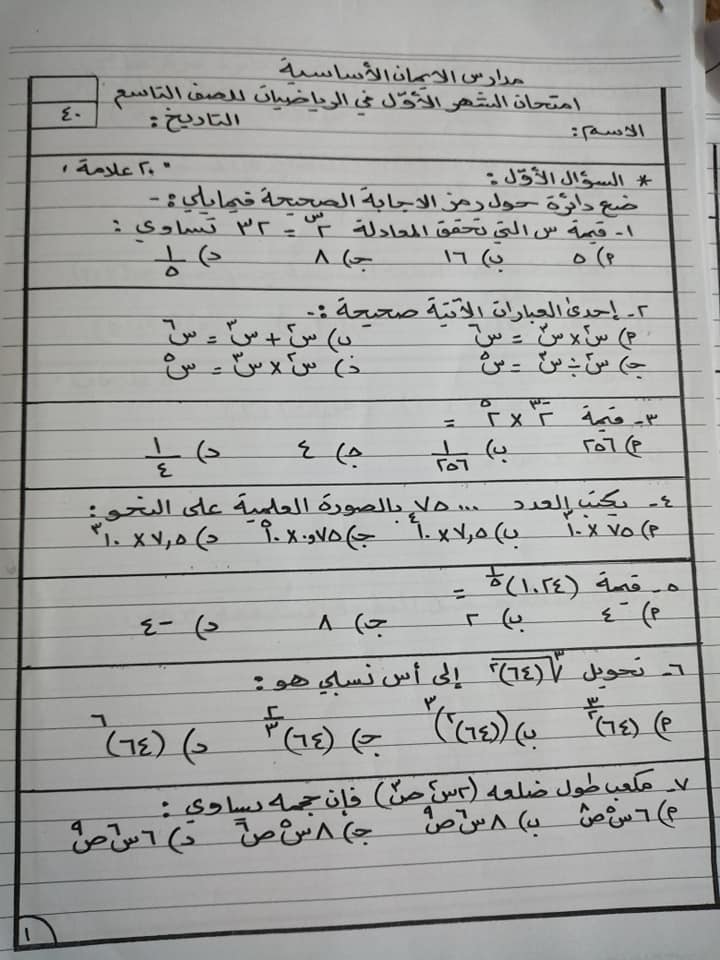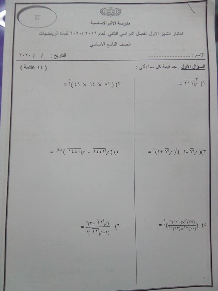 بالصور اختبار الشهر الاول لمادة الرياضيات للصف التاسع الفصل الثاني 2020 بالصور امتحان الشهر الاول لمادة الرياضيات للصف التاسع الفصل الثاني 2020 امتحان