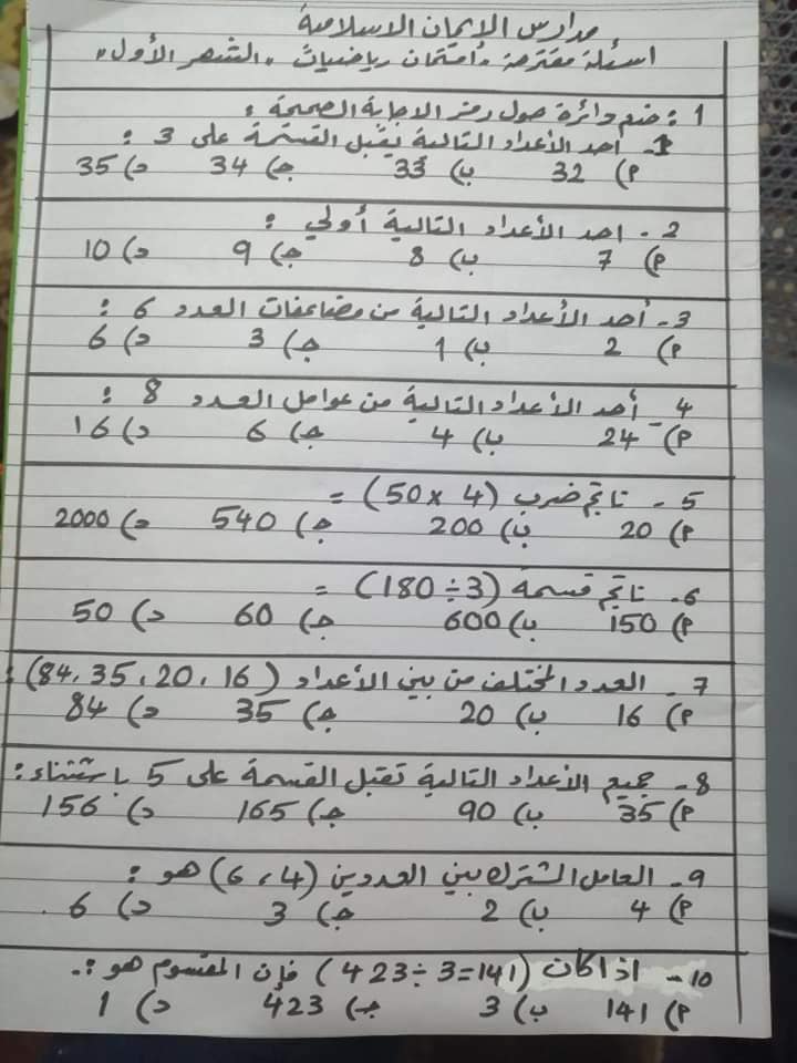 بالصور اختبار شهر اول مقترح لمادة الرياضيات للصف الرابع الفصل الثاني 2020 بالصور امتحان شهر اول مقترح لمادة الرياضيات للصف الرابع الفصل الثاني 2020 با