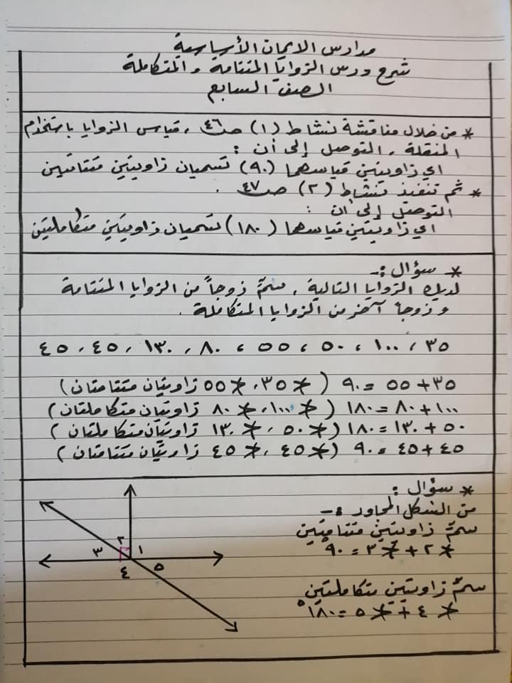 بالصور شرح درس الزوايا المتتامة و المتكاملة للصف السابع الفصل الثاني 2020 بالصور شرح درس الزوايا المتتامة و المتكاملة للصف السابع الفصل الثاني 2020 با