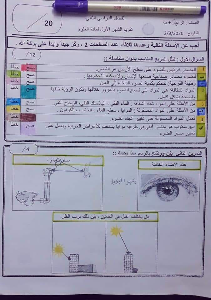 صور اختبار علوم شهر اول للصف الرابع الفصل الثاني 2020 صور امتحان علوم شهر اول للصف الرابع الفصل الثاني 2020 صور امتحان علوم شهر اول للصف الرابع الفصل