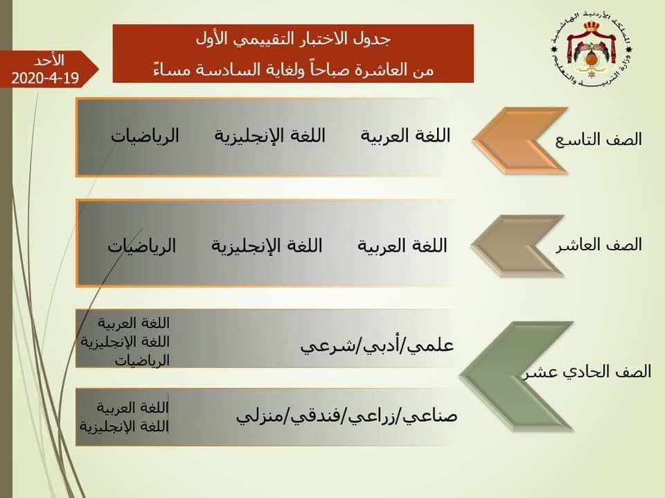جدول الاختبار التقييمي الاول ليوم الاحد الموافق 2020/4/18 على منصة درسك جدول الاختبار التقييمي الاول ليوم الاحد الموافق 2020/4/18 على منصة درسك