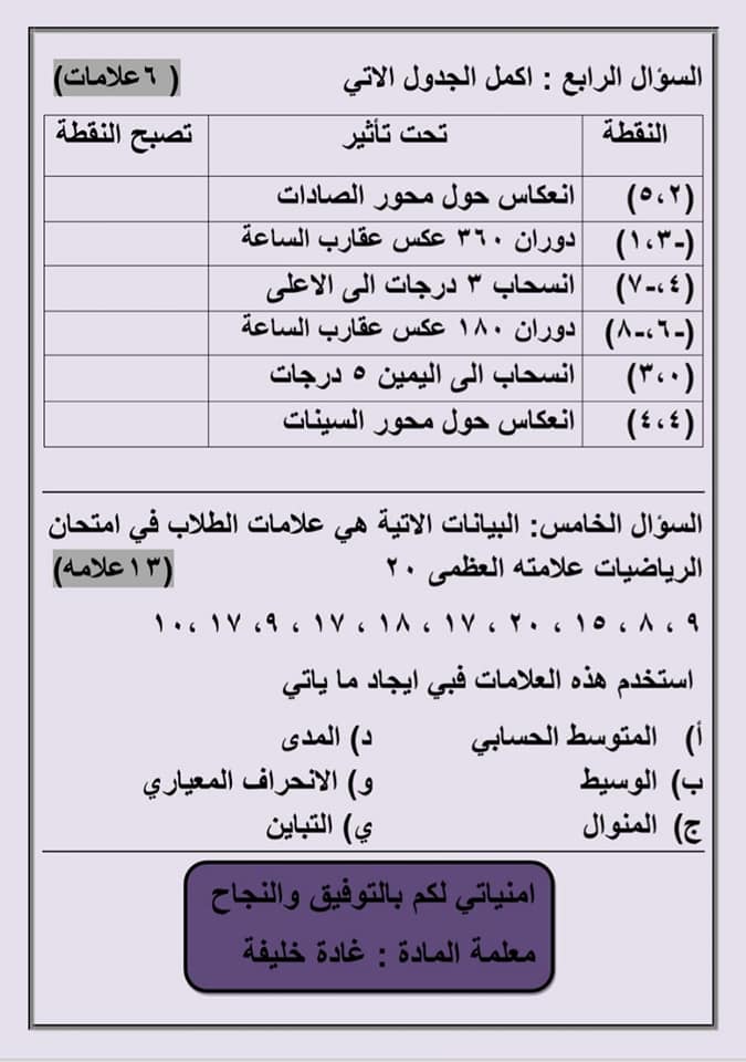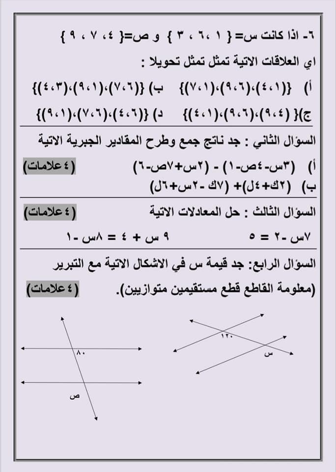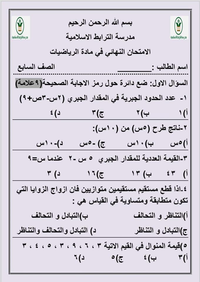 صور امتحان رياضيات نهائي للصف التاسع الفصل الثاني 2020 صور اختبار رياضيات نهائي للصف التاسع الفصل الثاني 2020 صور اختبار رياضيات نهائي للصف التاسع الف